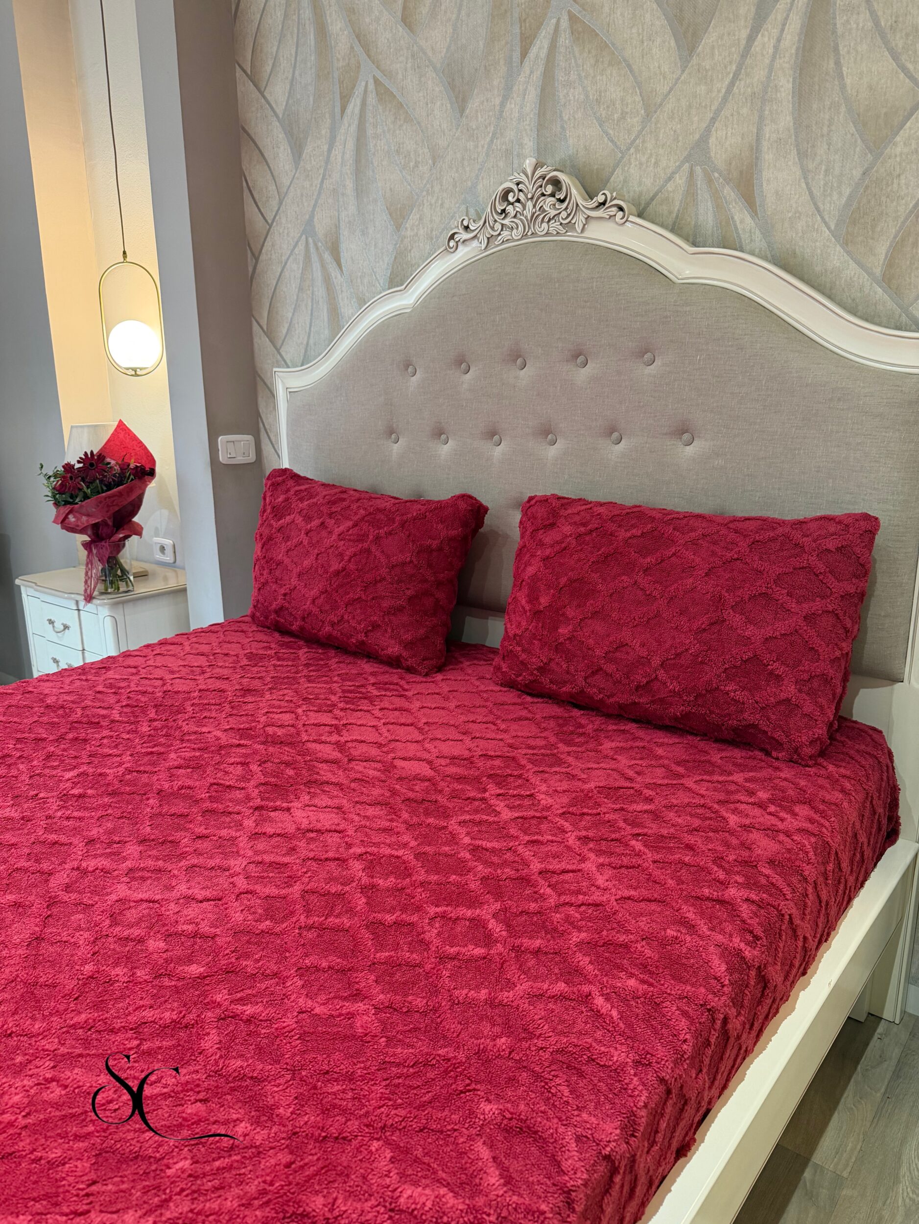 Parure de lit au toucher doux et chaleureux, dans une teinte rouge profond apportant caractère et raffinement à la chambre. Le Drap Housse texturé 1m80/2m est accompagné de deux coussins assortis 50/70 créant une harmonie parfaite.