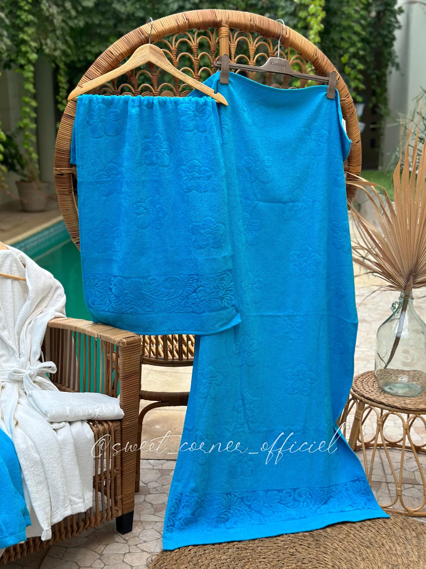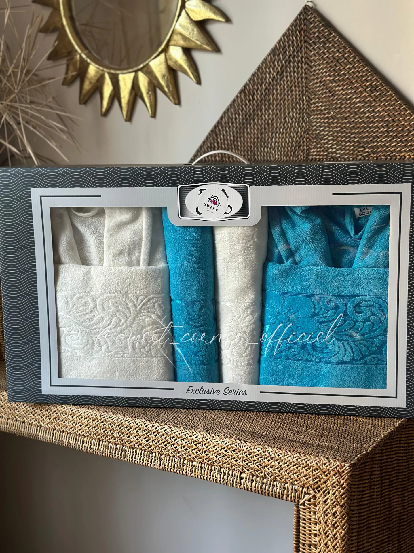 Cap de bain 06 pièces 100% coton – 2 Capes de bain taille standard – 2 Serviettes (50/90) – 2 Draps de bain (90/160)