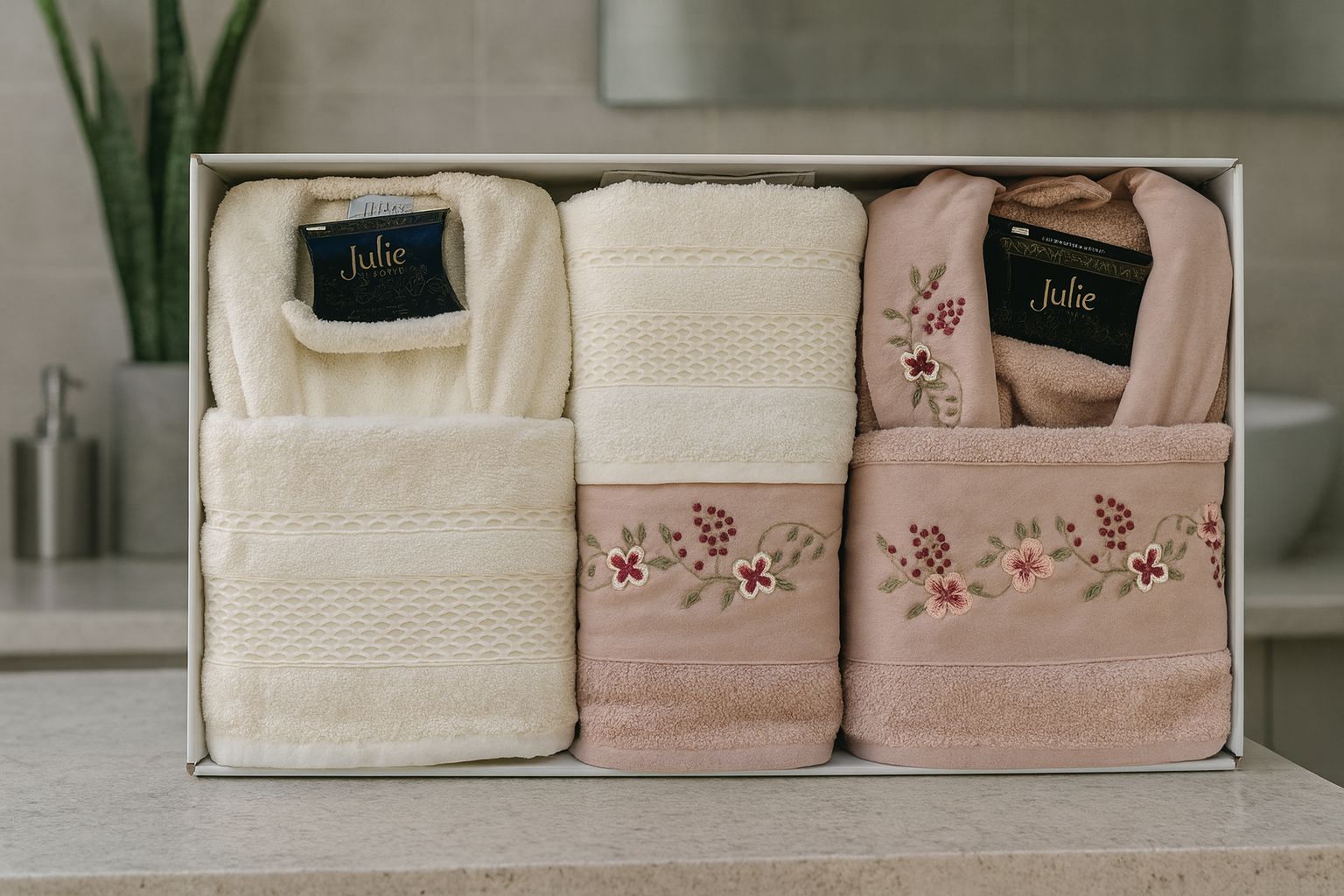 - 2 Capes de bain (1 version homme sobre & 1 version femme avec broderies fleuries raffinées)