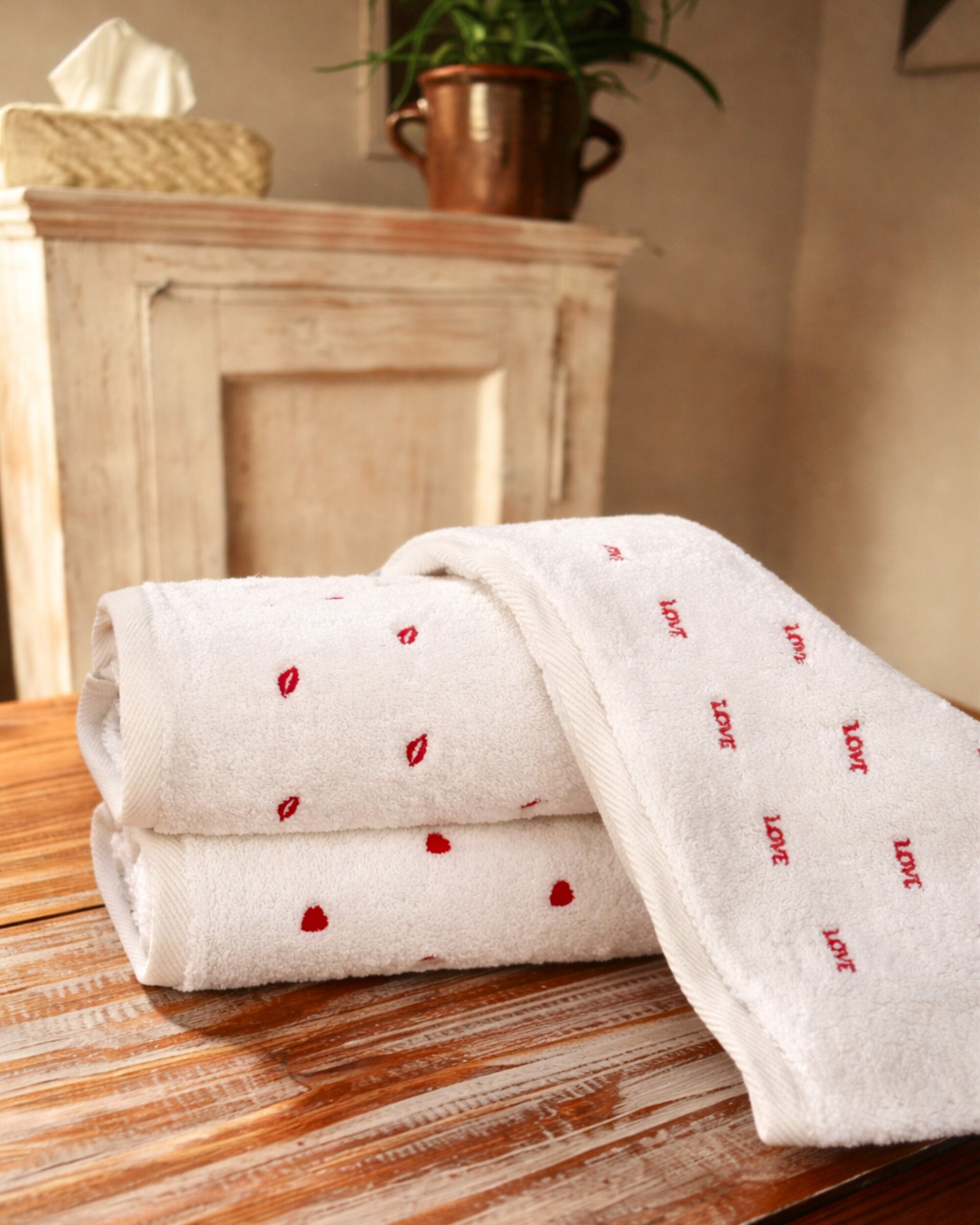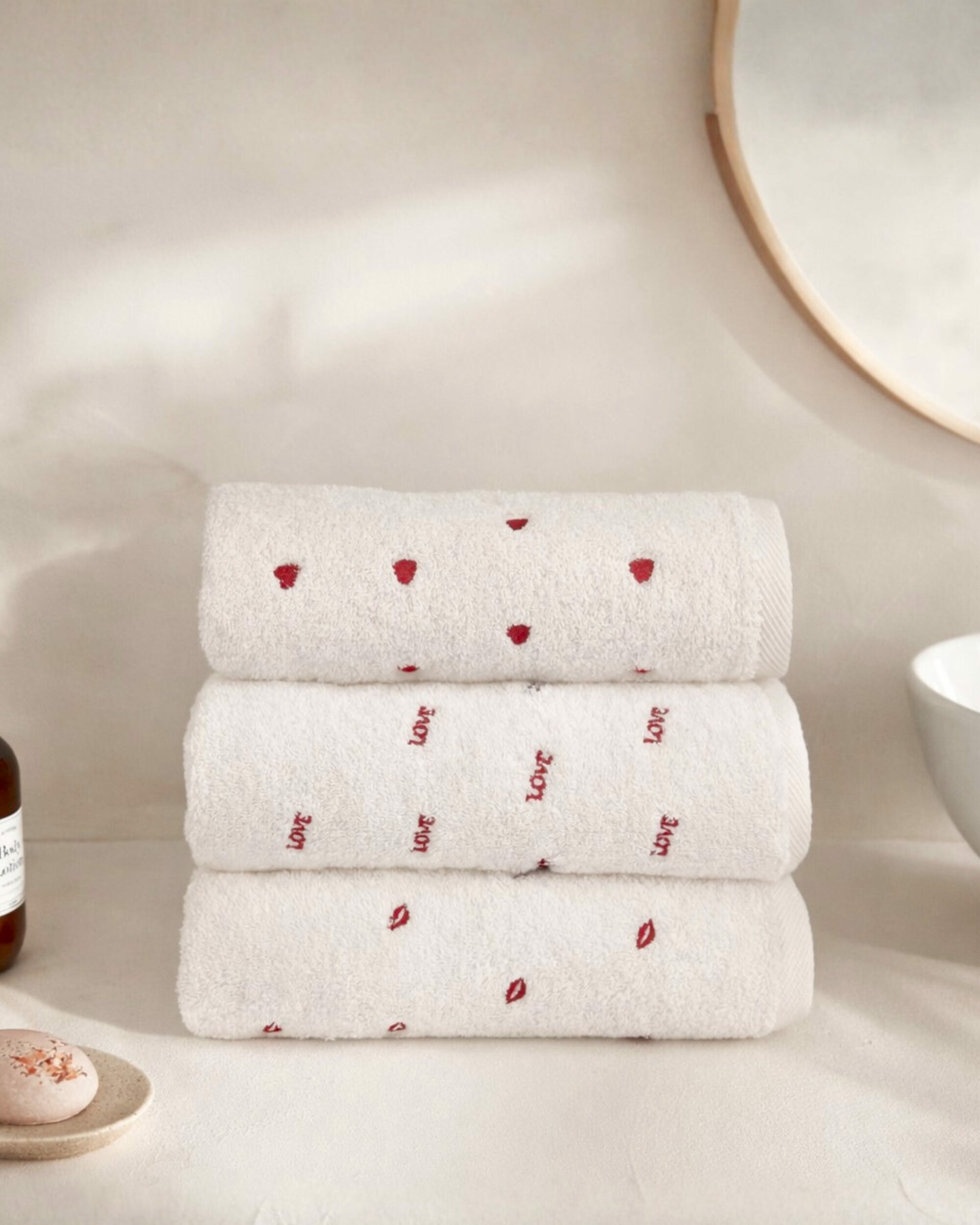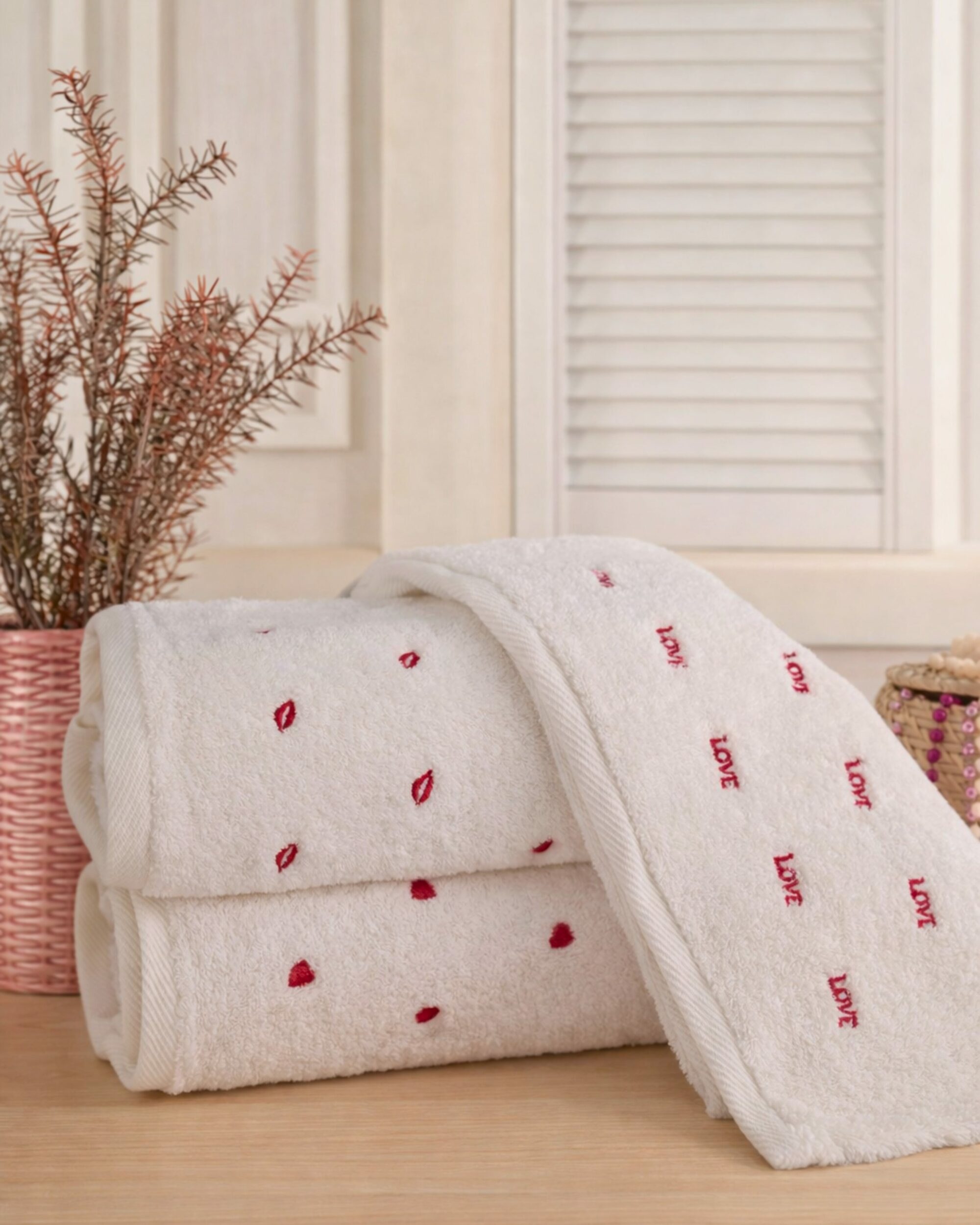 Découvrez ce magnifique lot de serviettes élégantes et ultra-douces, conçu pour apporter confort, style et tendresse à votre salle de bain. Fabriquées dans un tissu absorbant et agréable au toucher, elles offrent une excellente capacité de séchage tout en restant délicates pour la peau. Leur design moderne est sublimé par des motifs LOVE et de jolis cœurs rouges spéciaux, ajoutant une touche romantique et chaleureuse à votre espace.
