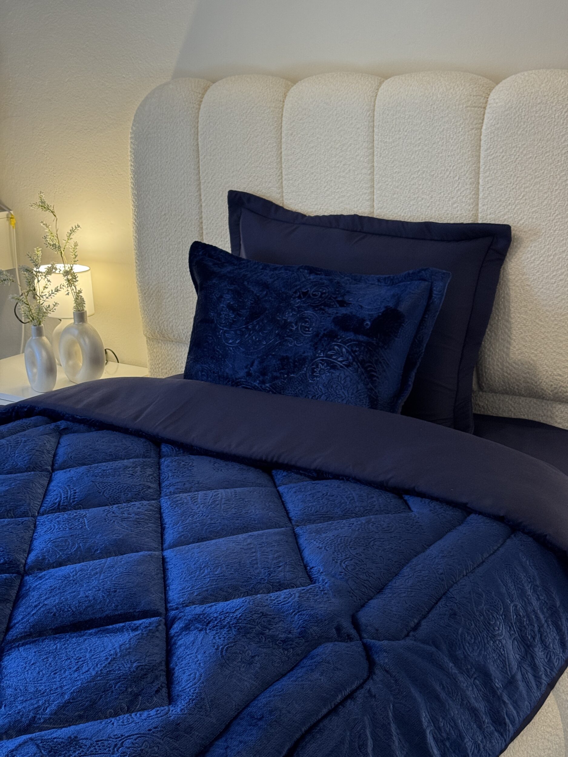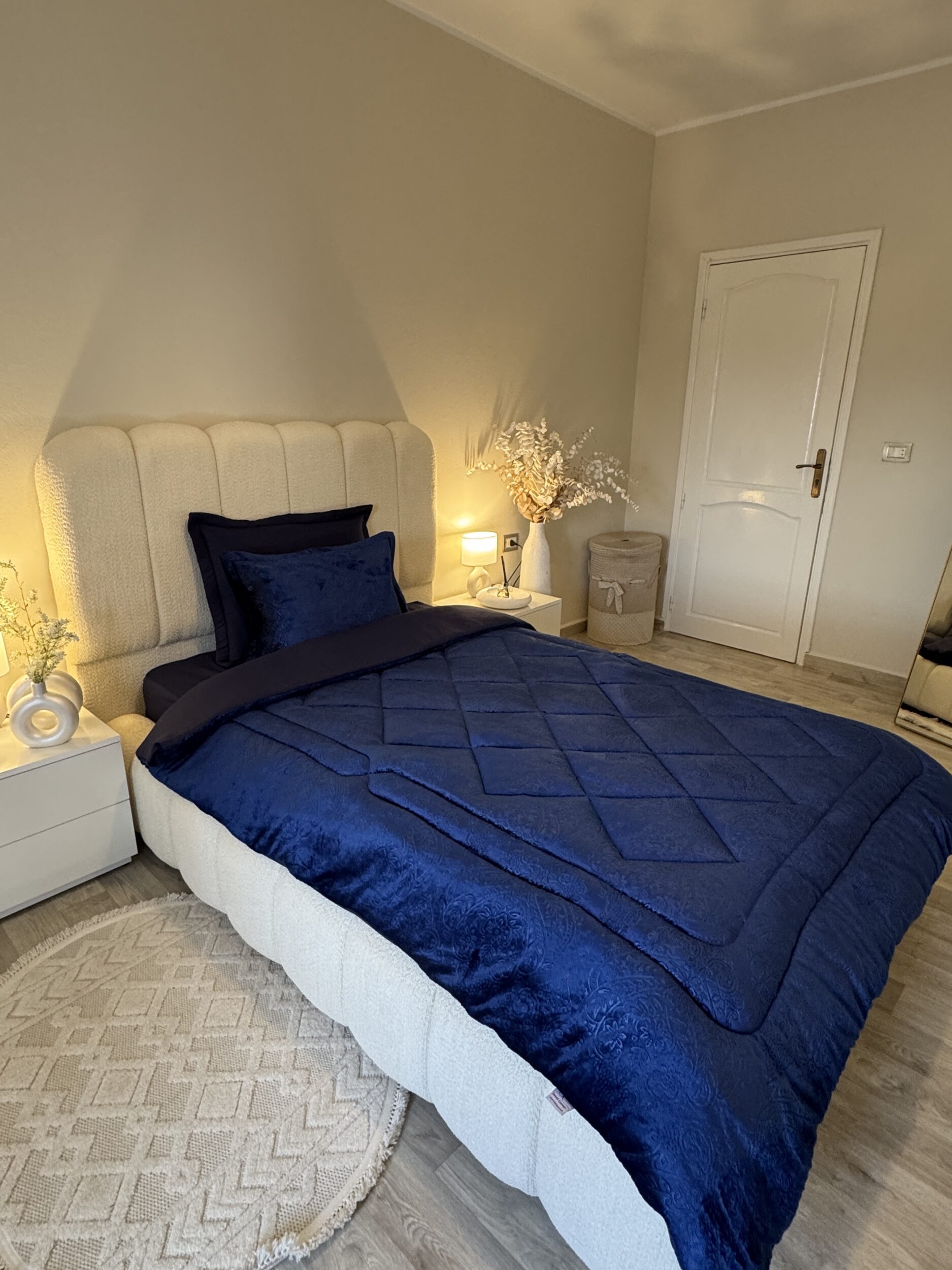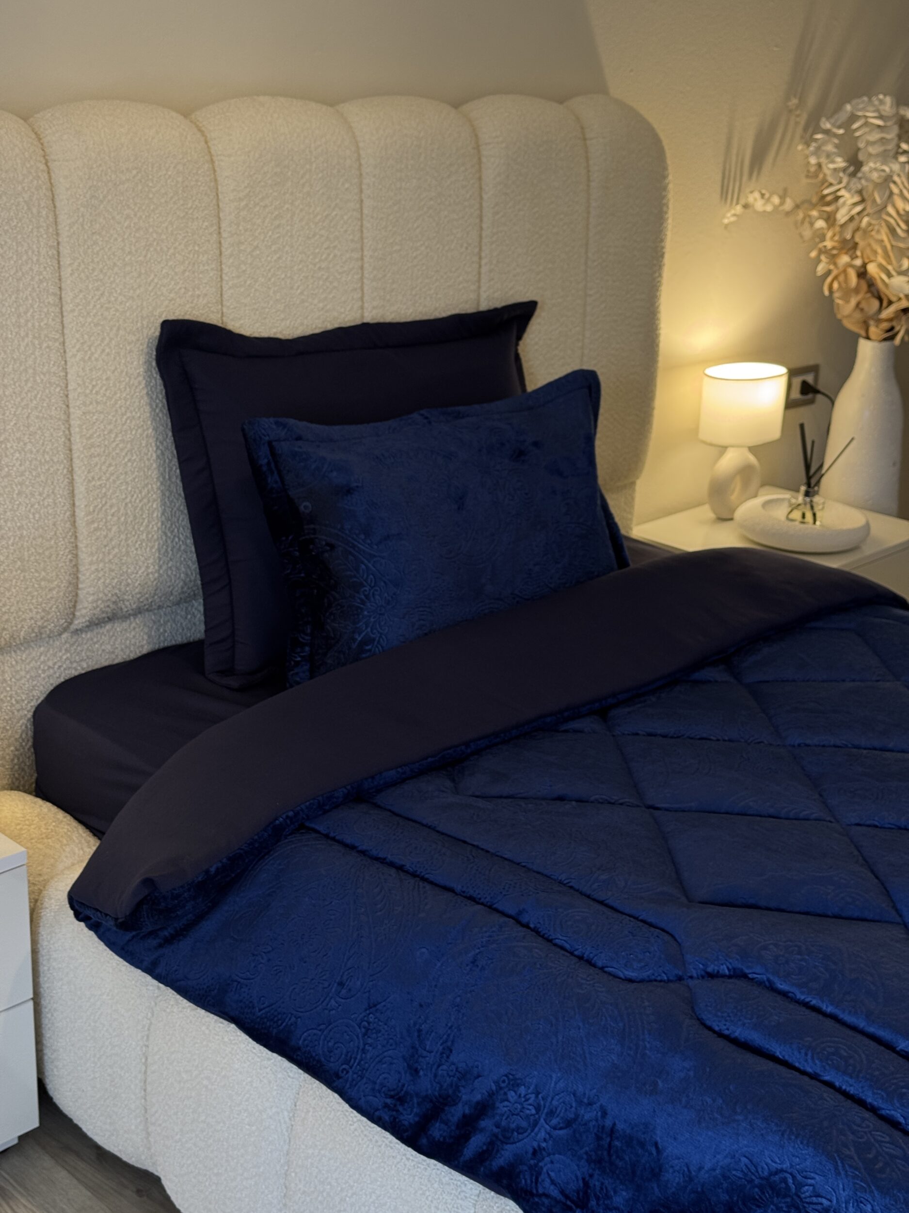 Découvrez notre ensemble de literie haut de gamme, parfait pour les nuits les plus fraîches. La couette double face, en polaire d’un côté et en coton doux de l’autre, s’adapte à toutes vos envies. Elle est accompagnée d’une housse de lit en coton, de deux taies d’oreiller en coton matelassé et de deux taies d’oreiller en polaire douillette.