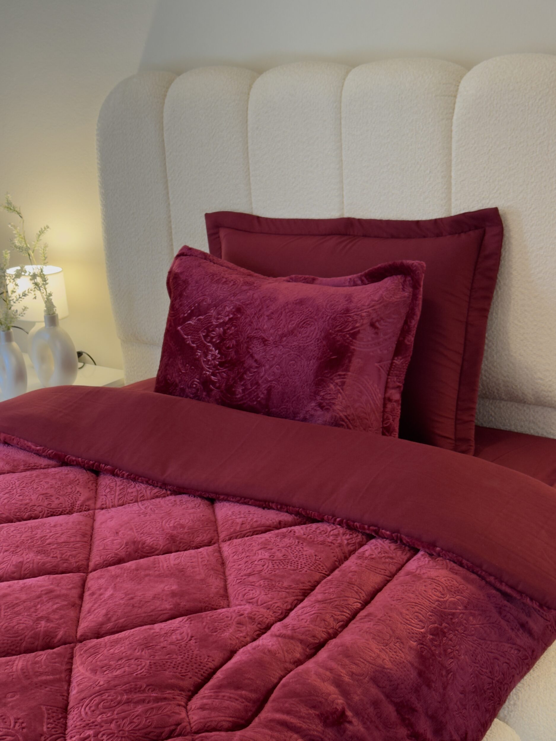 Découvrez notre ensemble de literie haut de gamme, parfait pour les nuits les plus fraîches. La couette double face, en polaire d’un côté et en coton doux de l’autre, s’adapte à toutes vos envies. Elle est accompagnée d’une housse de lit en coton, de deux taies d’oreiller en coton matelassé et de deux taies d’oreiller en polaire douillette.