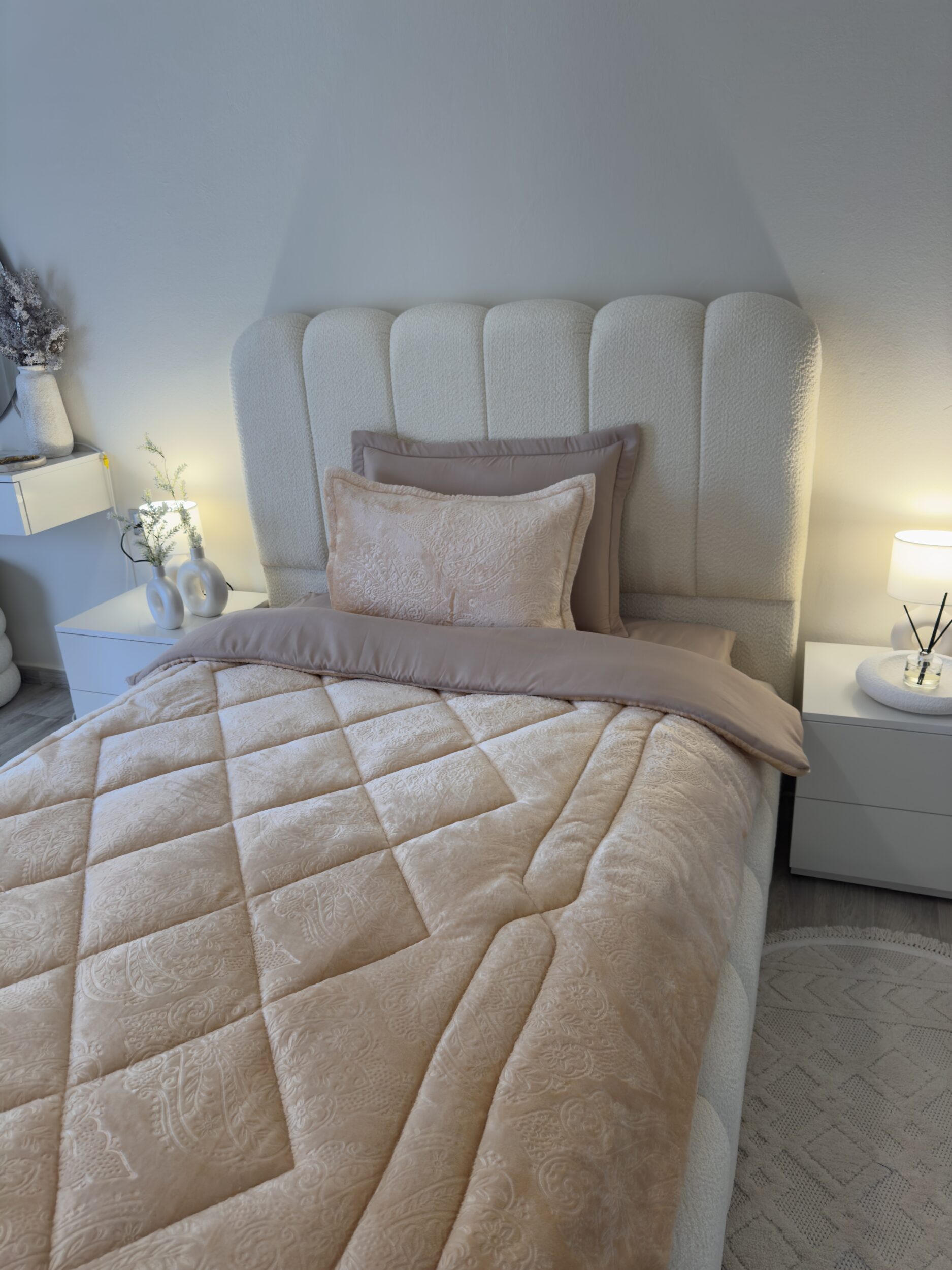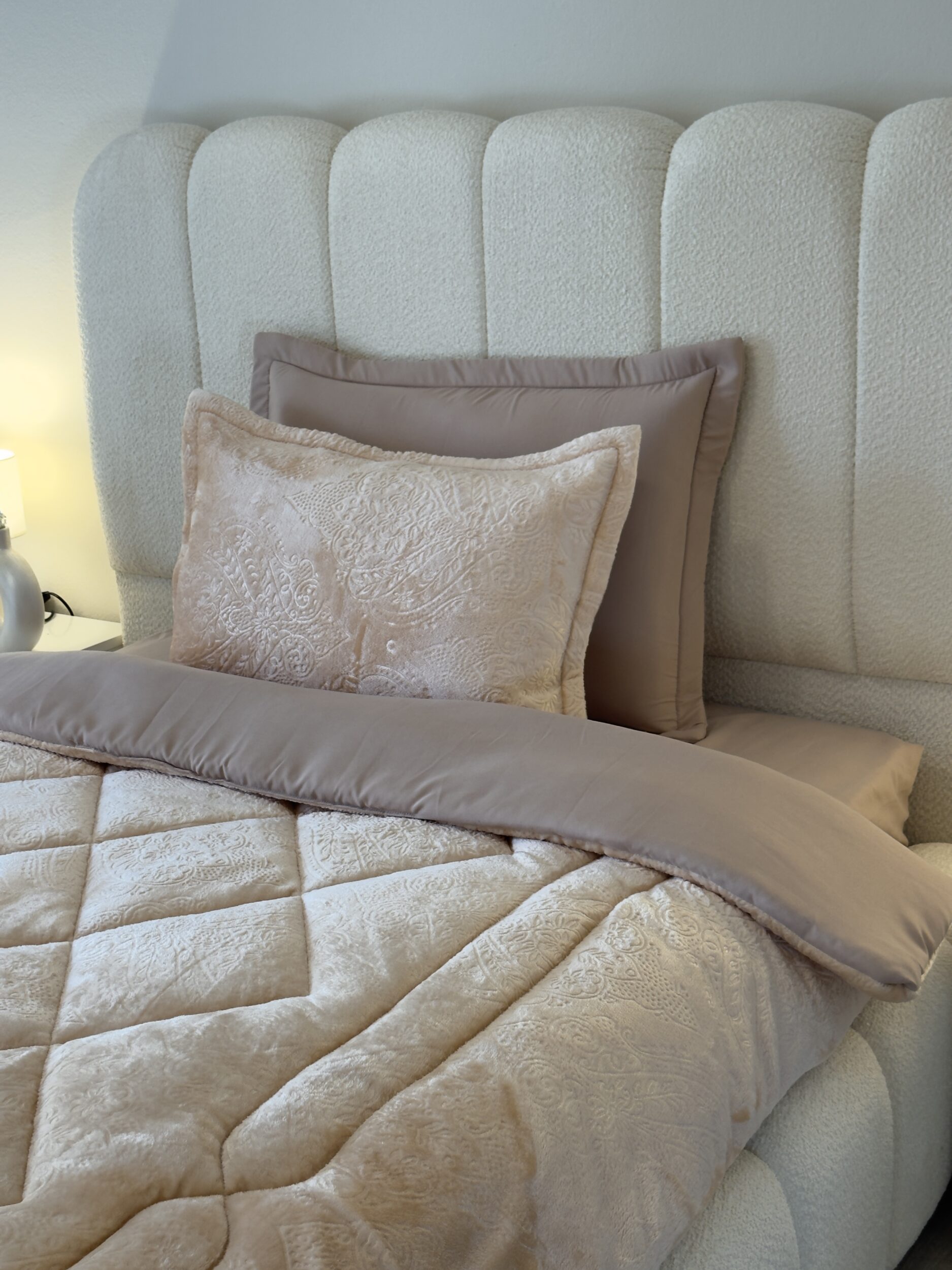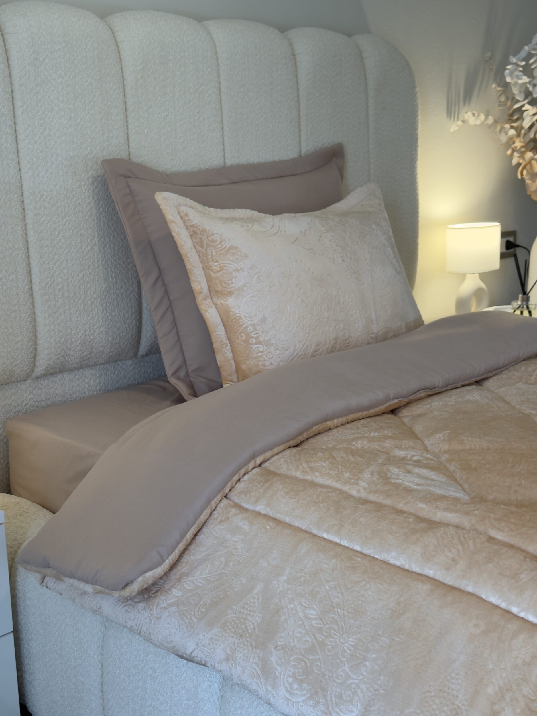 Découvrez notre ensemble de literie haut de gamme, parfait pour les nuits les plus fraîches. La couette double face, en polaire d’un côté et en coton doux de l’autre, s’adapte à toutes vos envies. Elle est accompagnée d’une housse de lit en coton, de deux taies d’oreiller en coton matelassé et de deux taies d’oreiller en polaire douillette.