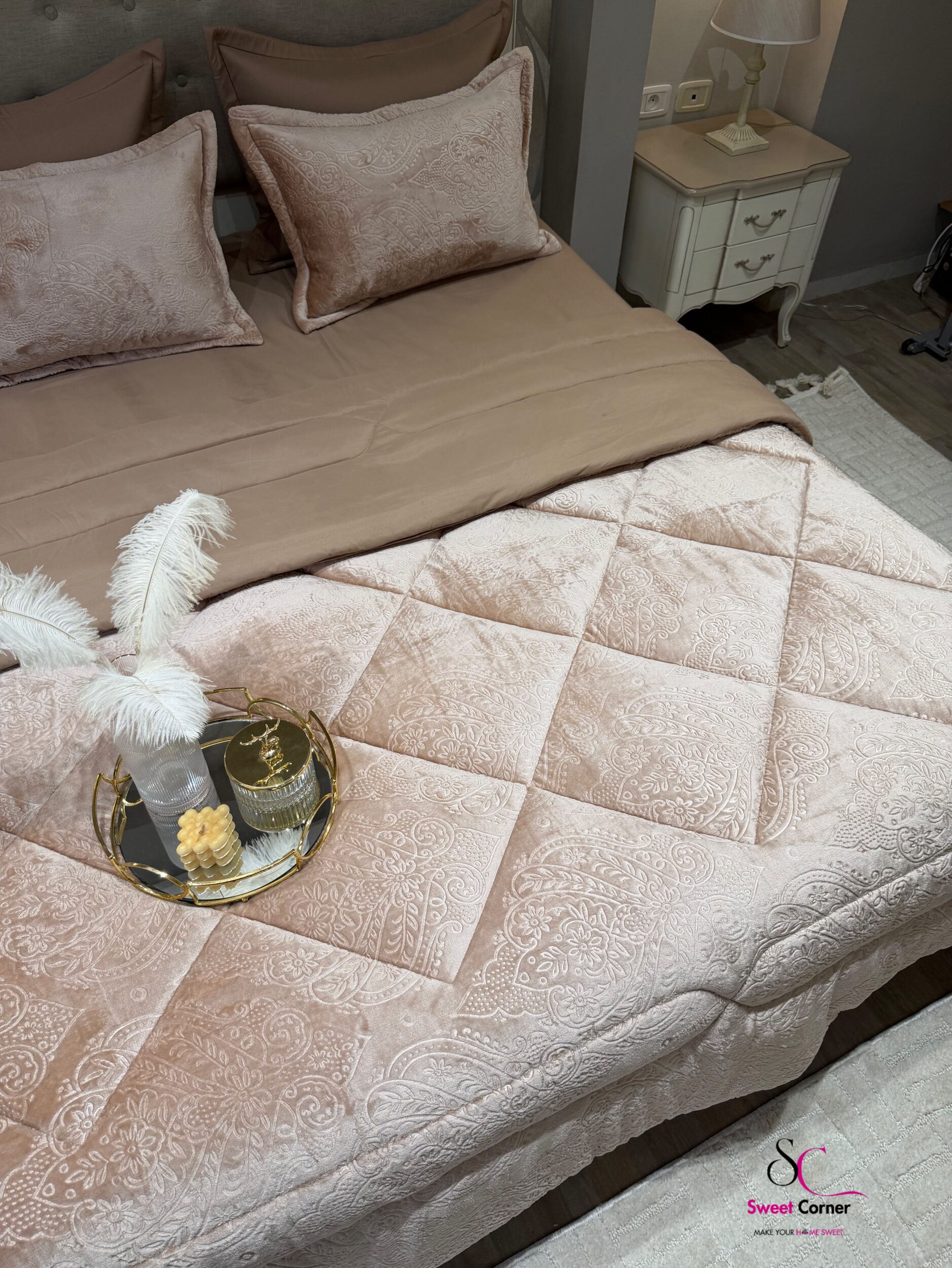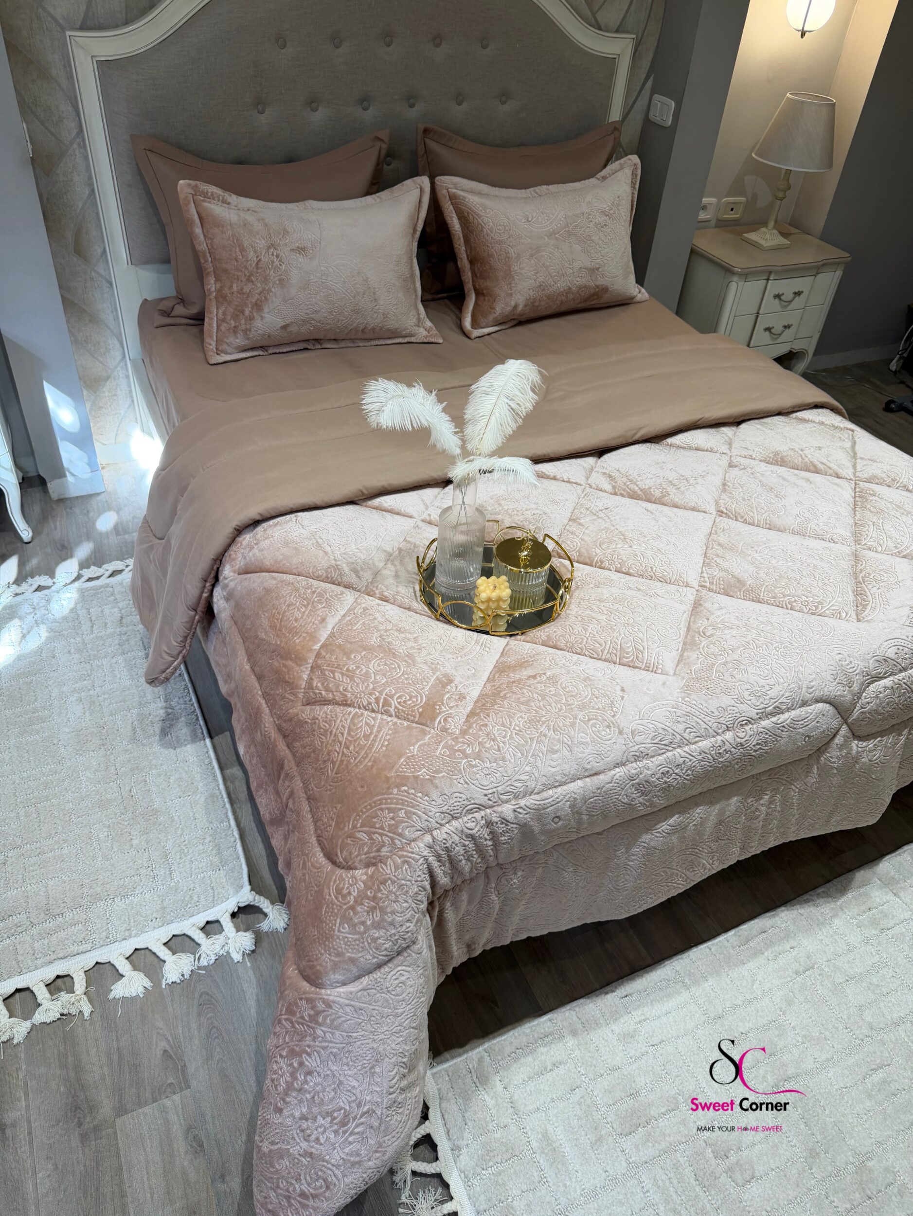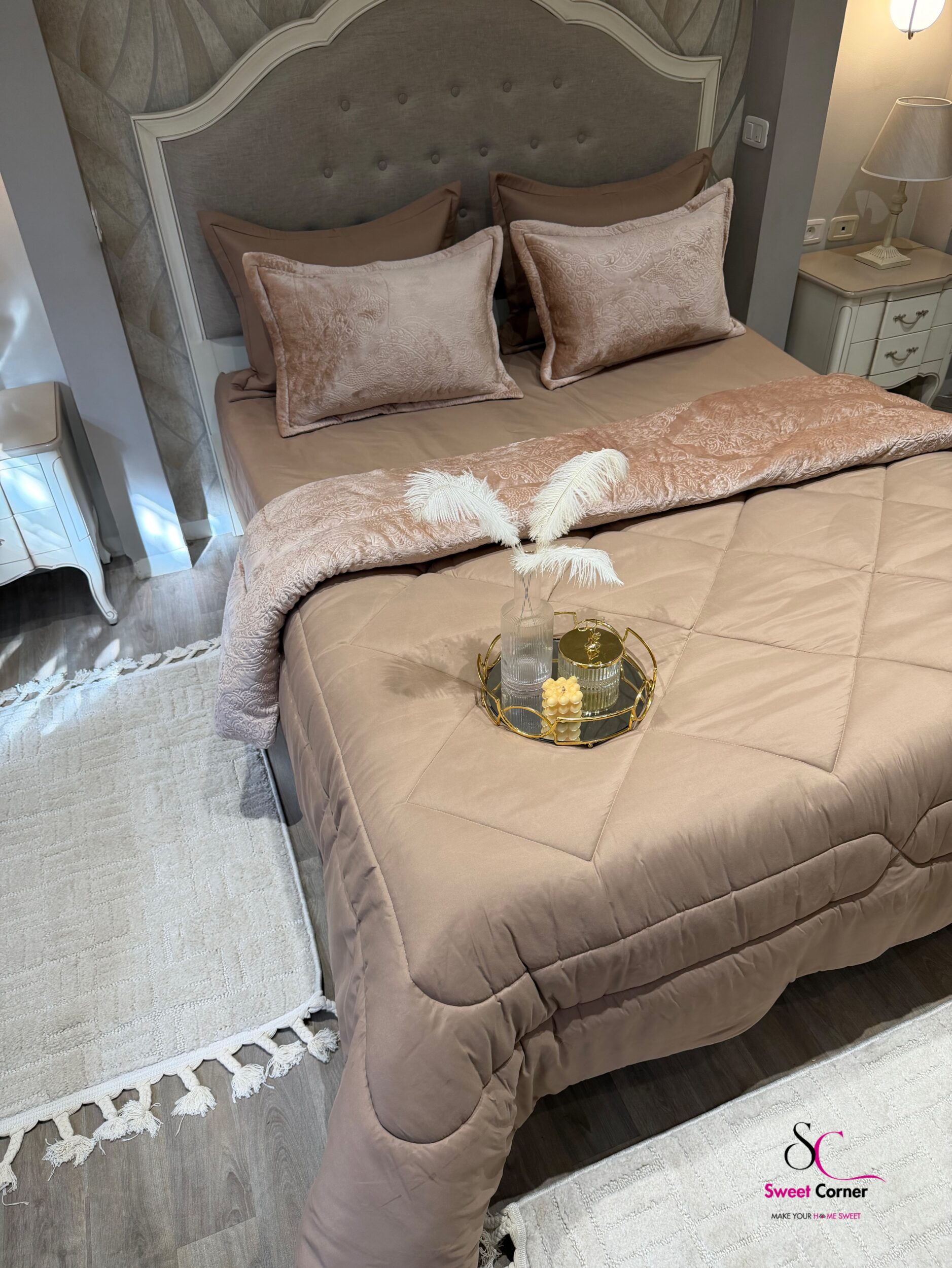 Découvrez notre ensemble de literie haut de gamme, parfait pour les nuits les plus fraîches. La couette double face, en polaire d’un côté et en coton doux de l’autre, s’adapte à toutes vos envies. Elle est accompagnée d’une housse de lit en coton, de deux taies d’oreiller en coton matelassé et de deux taies d’oreiller en polaire douillette.