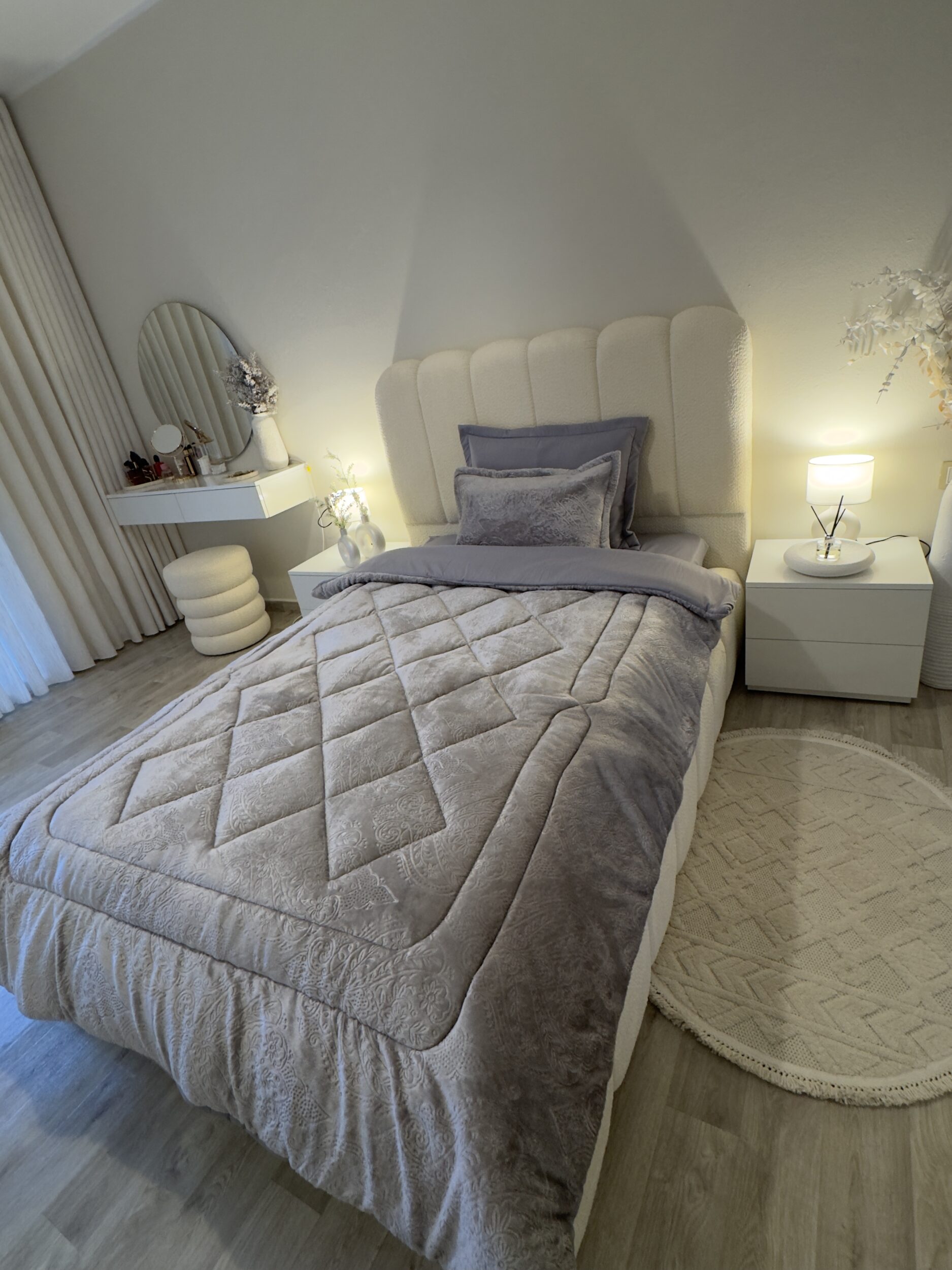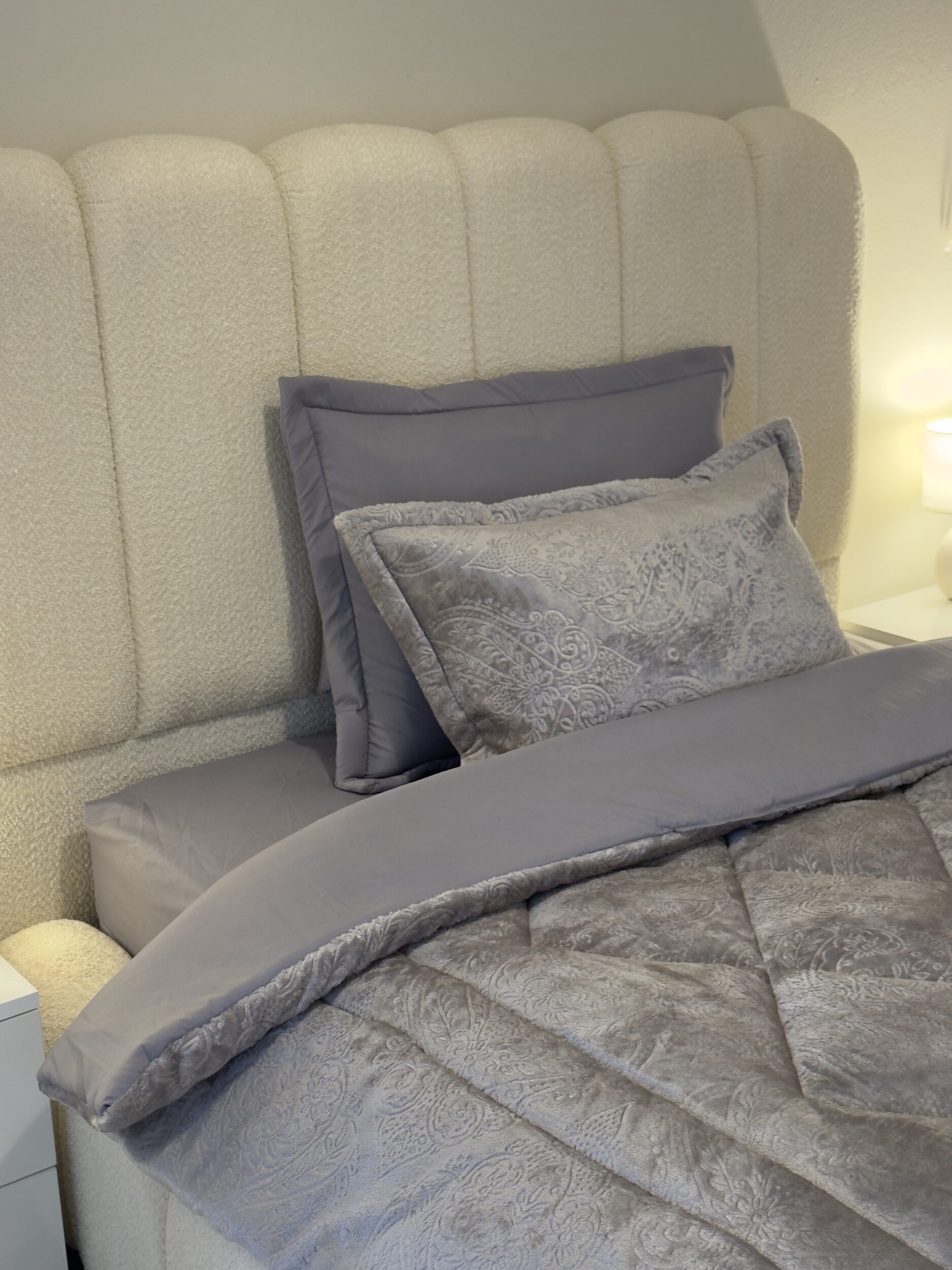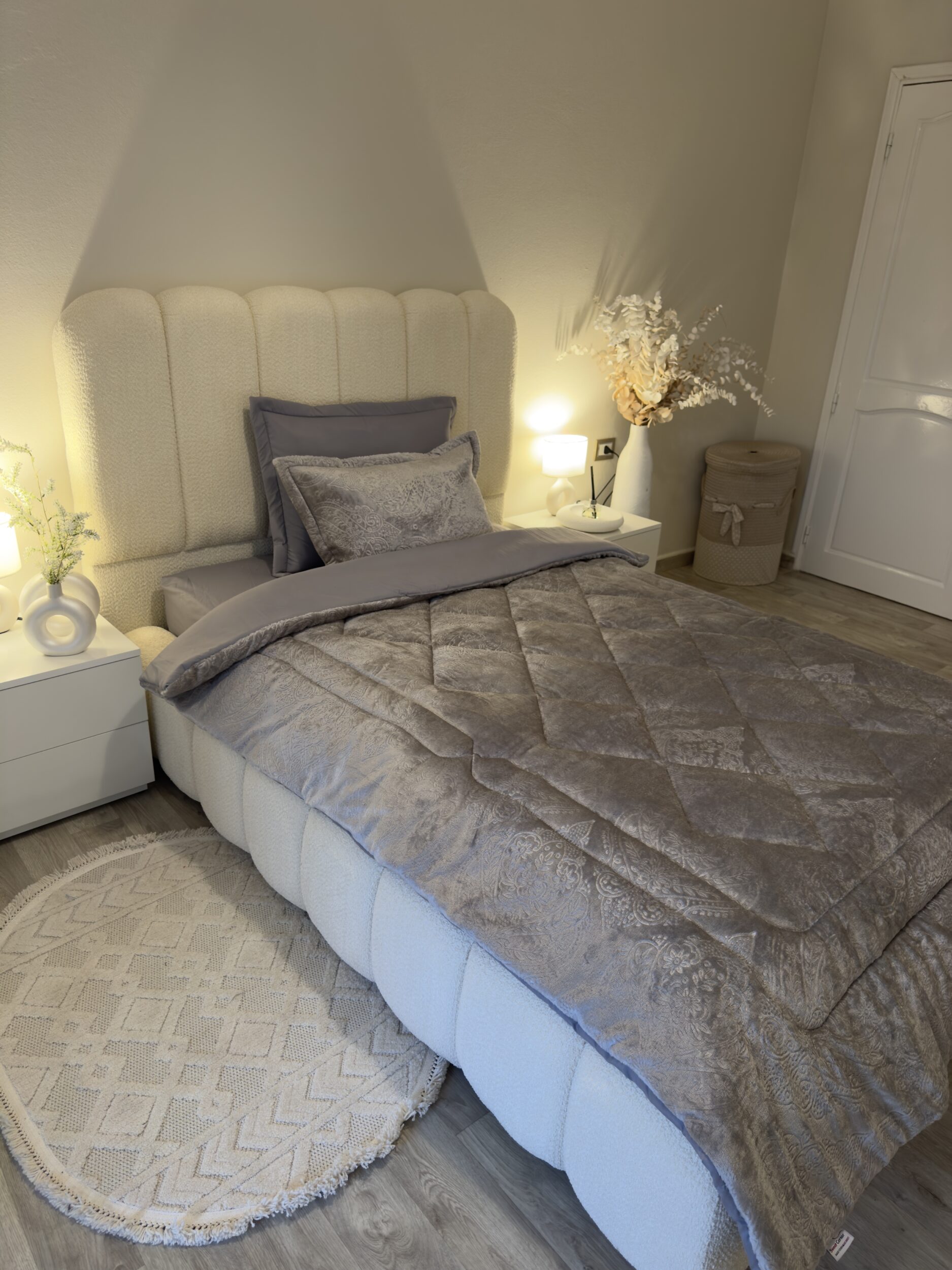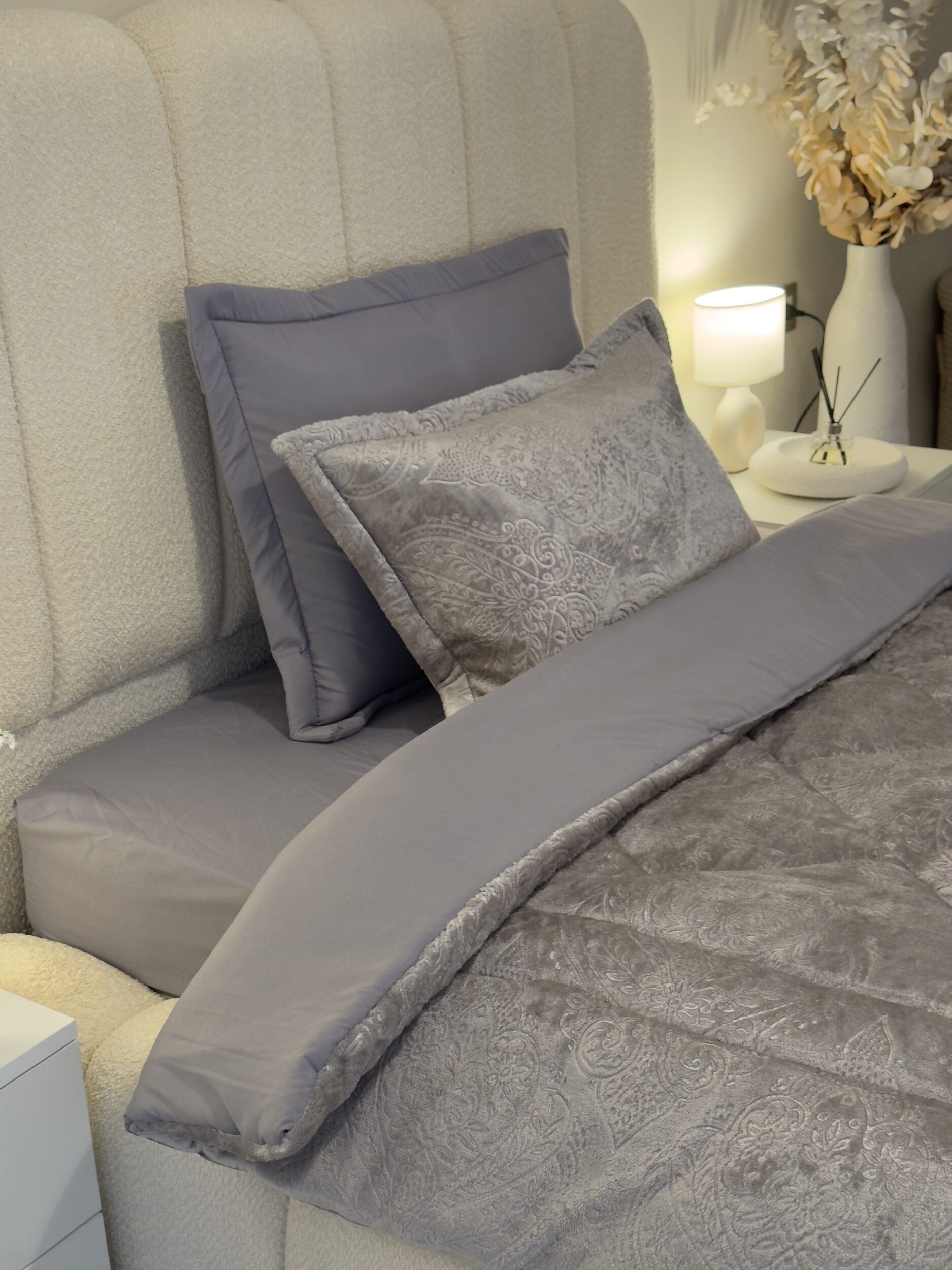 Découvrez notre ensemble de literie haut de gamme, parfait pour les nuits les plus fraîches. La couette double face, en polaire d’un côté et en coton doux de l’autre, s’adapte à toutes vos envies. Elle est accompagnée d’une housse de lit en coton, de deux taies d’oreiller en coton matelassé et de deux taies d’oreiller en polaire douillette.