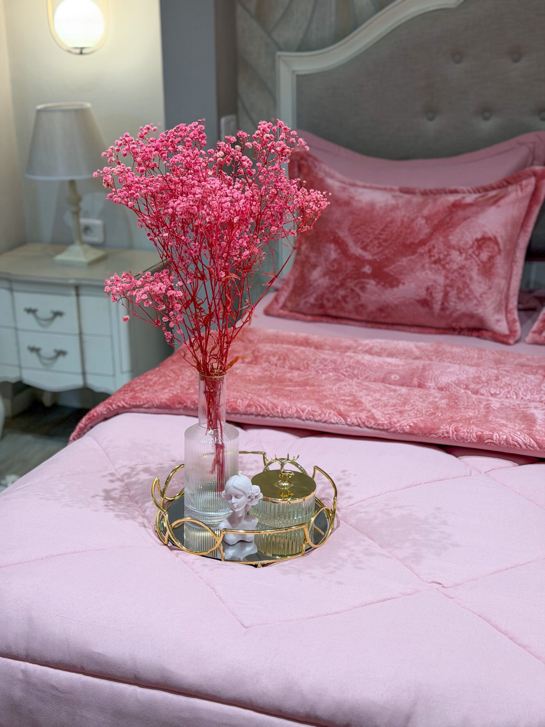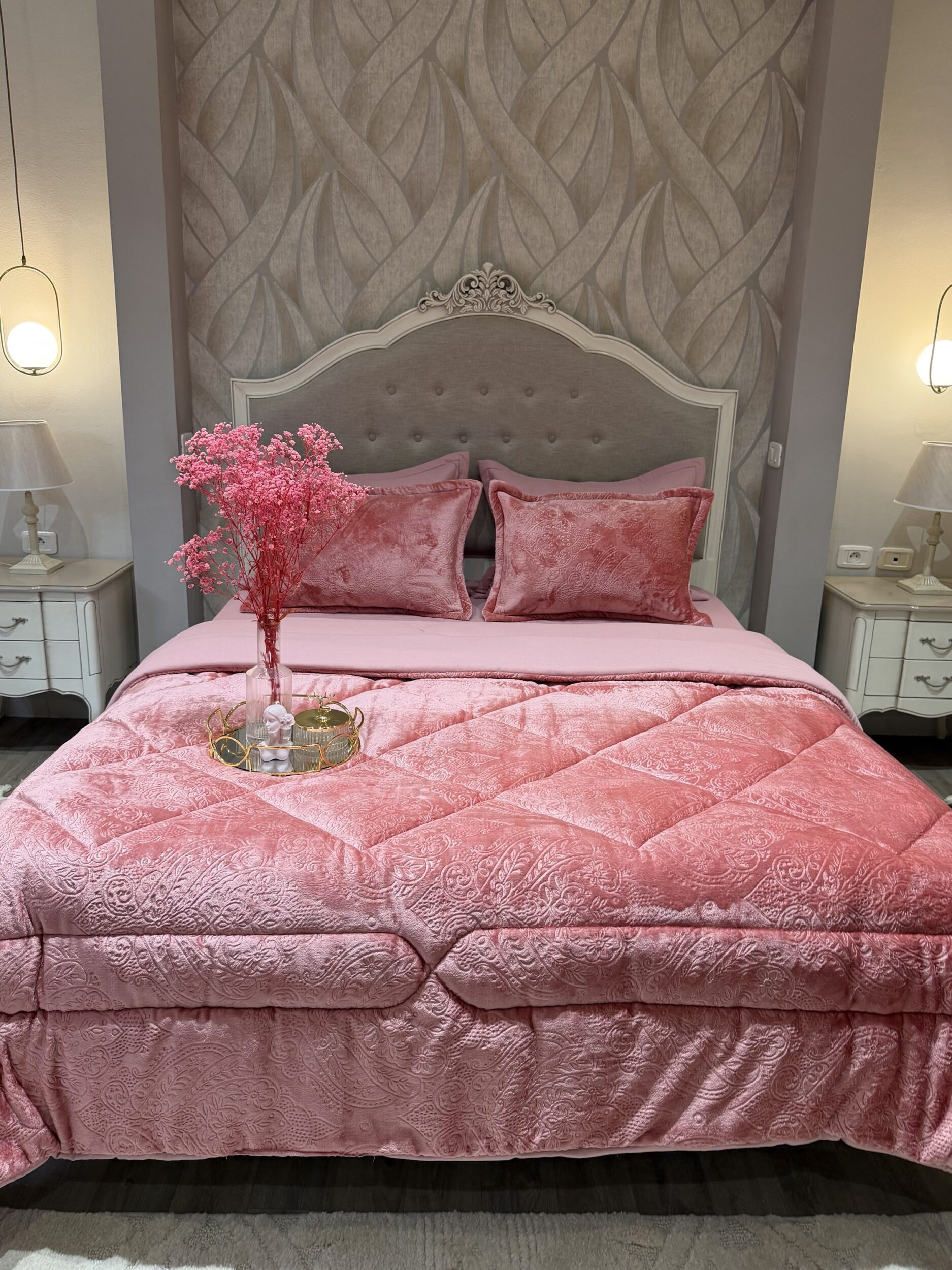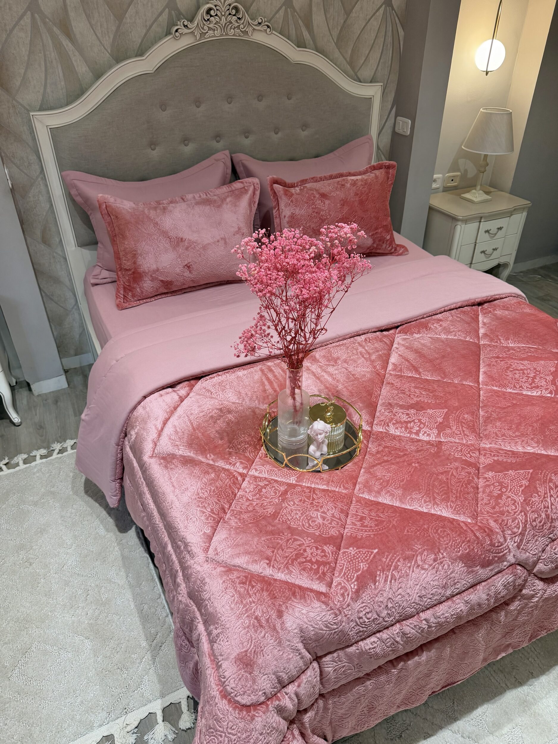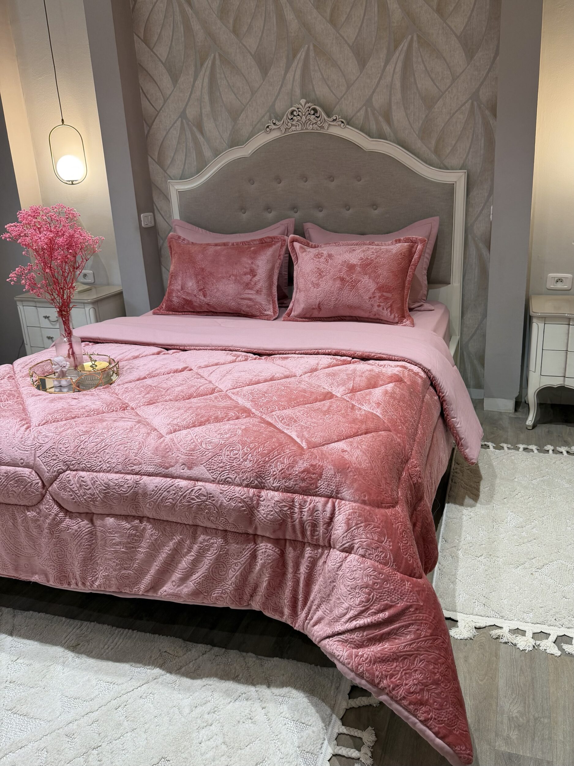 Couette en polaire rose poudré
