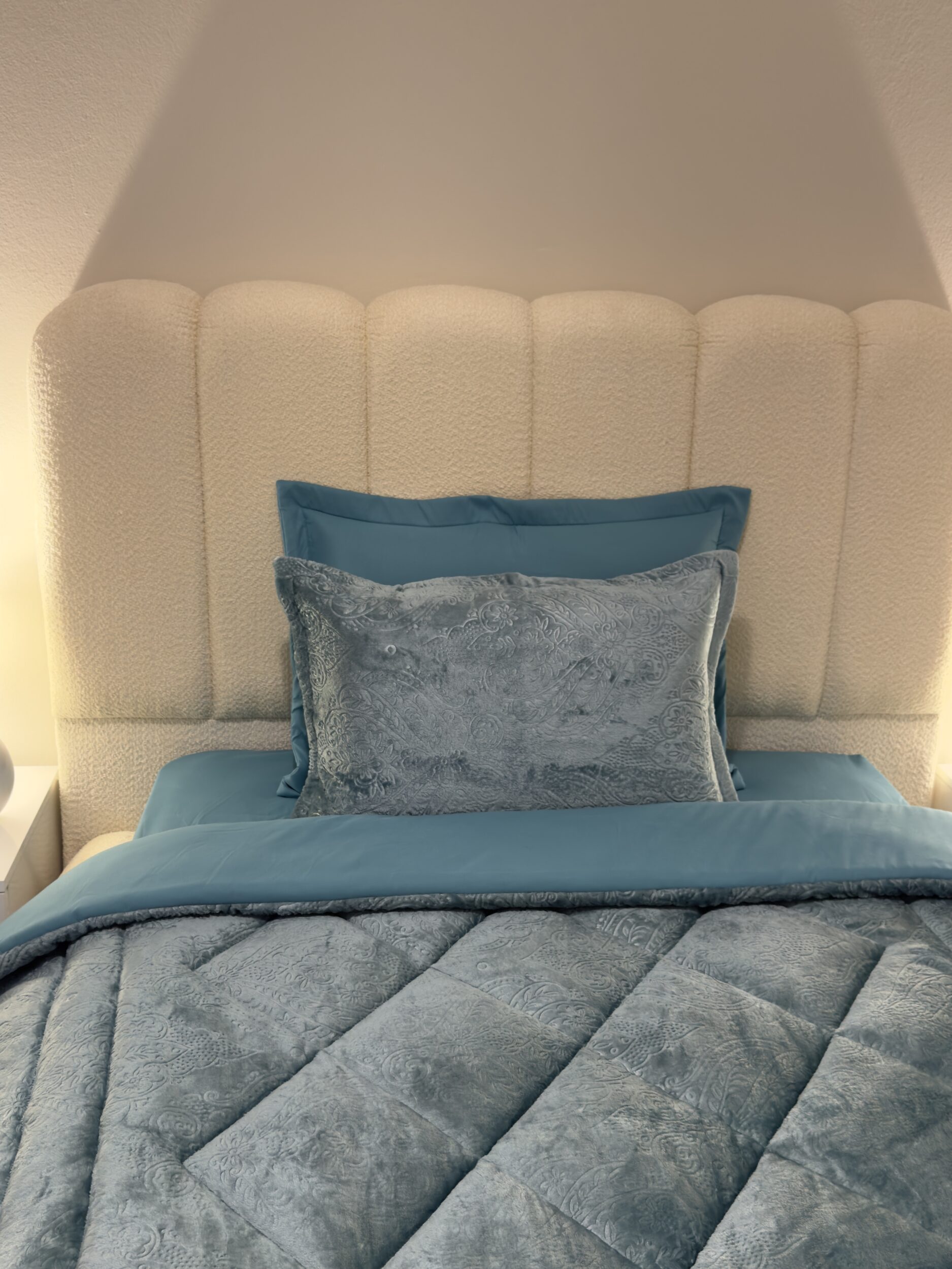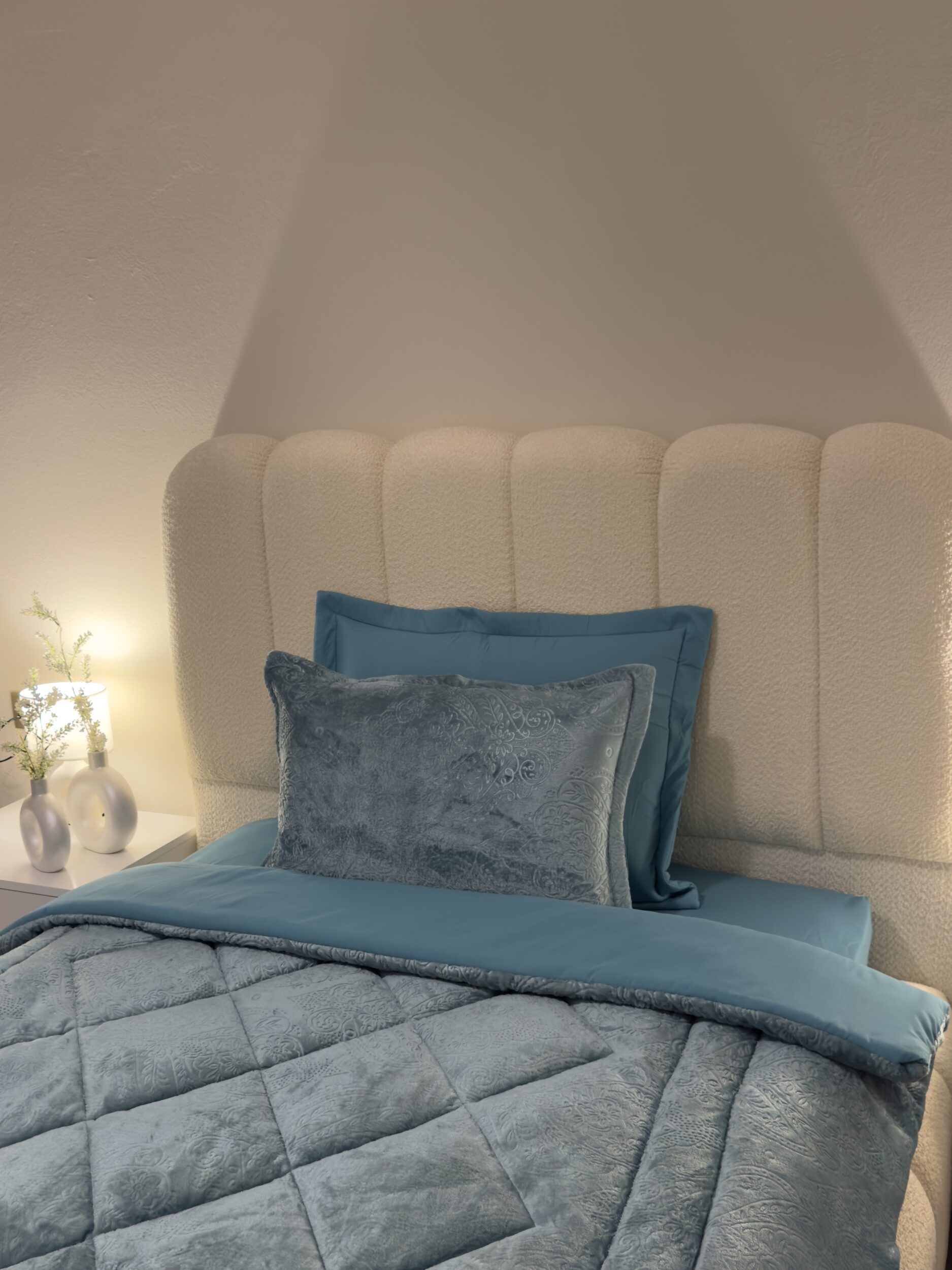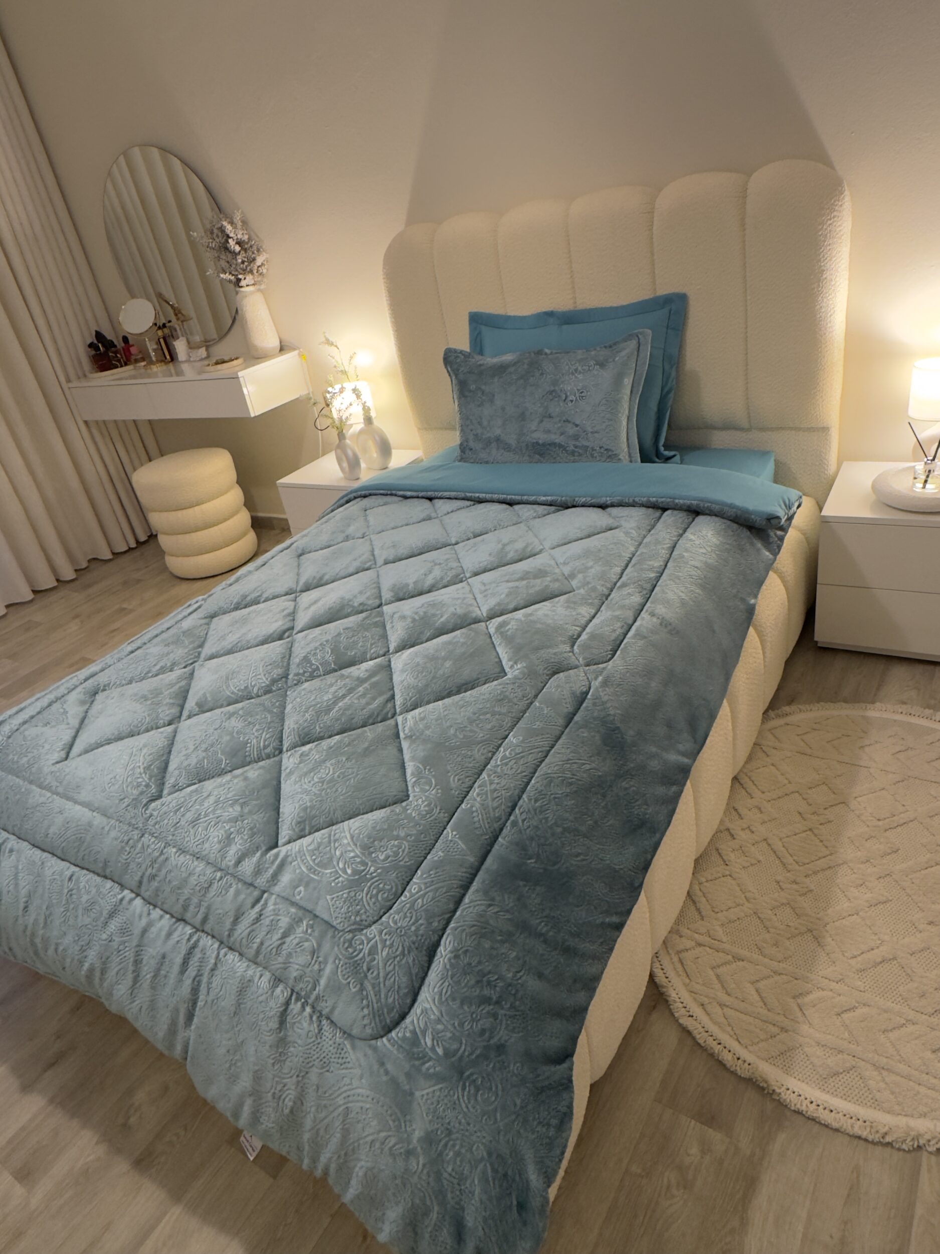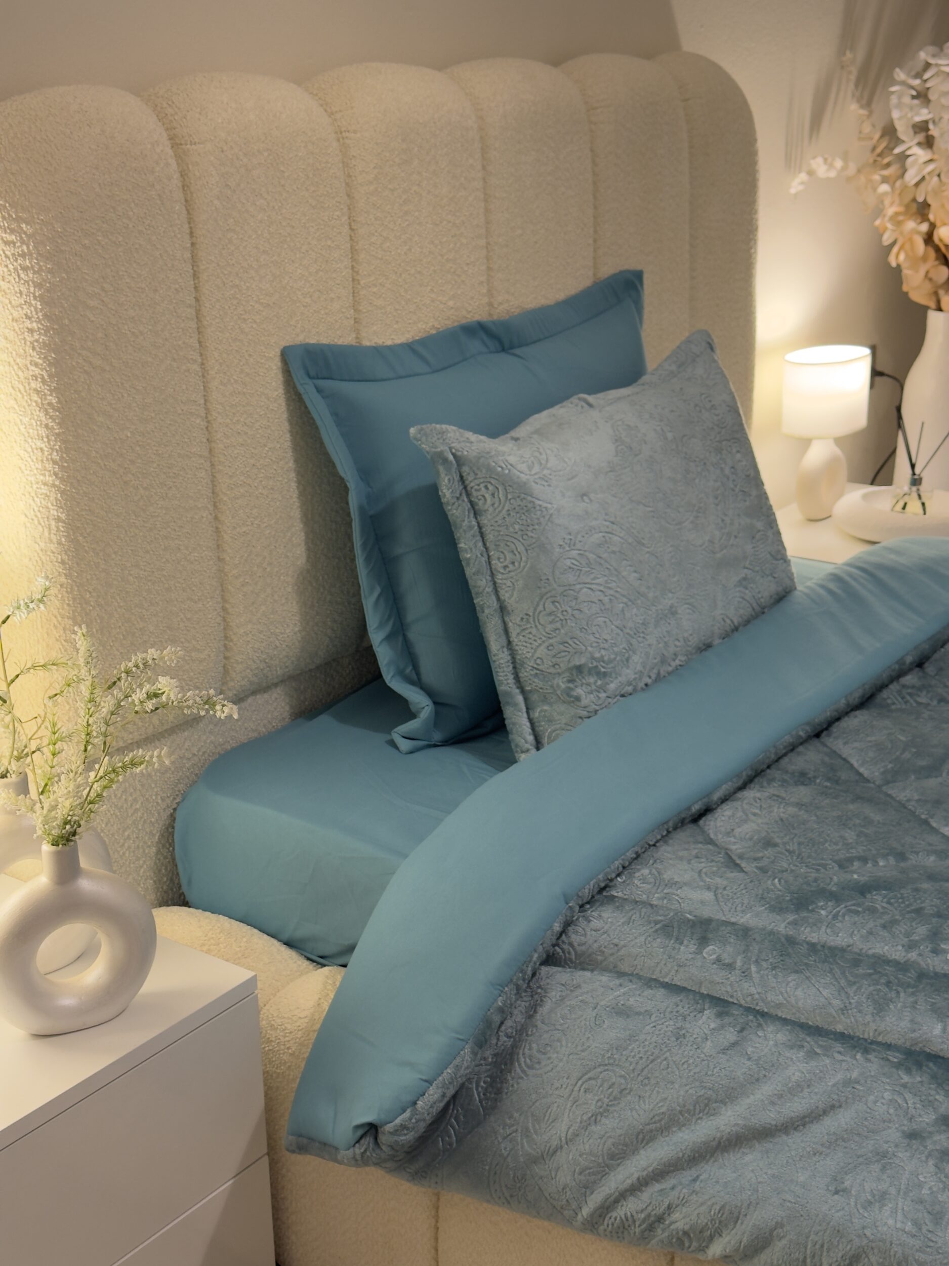 Découvrez notre ensemble de literie haut de gamme, parfait pour les nuits les plus fraîches. La couette double face, en polaire d’un côté et en coton doux de l’autre, s’adapte à toutes vos envies. Elle est accompagnée d’une housse de lit en coton, de deux taies d’oreiller en coton matelassé et de deux taies d’oreiller en polaire douillette.