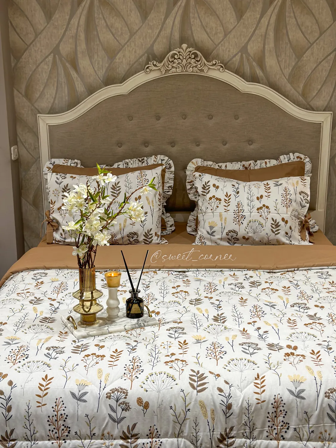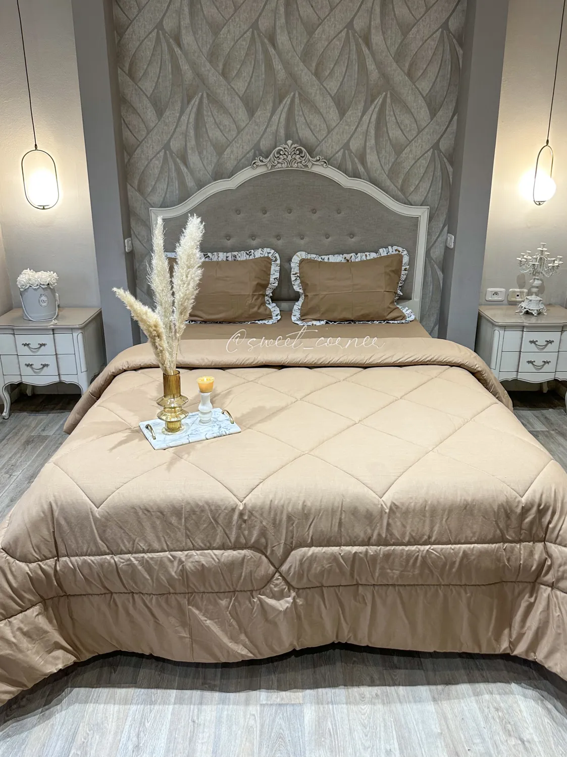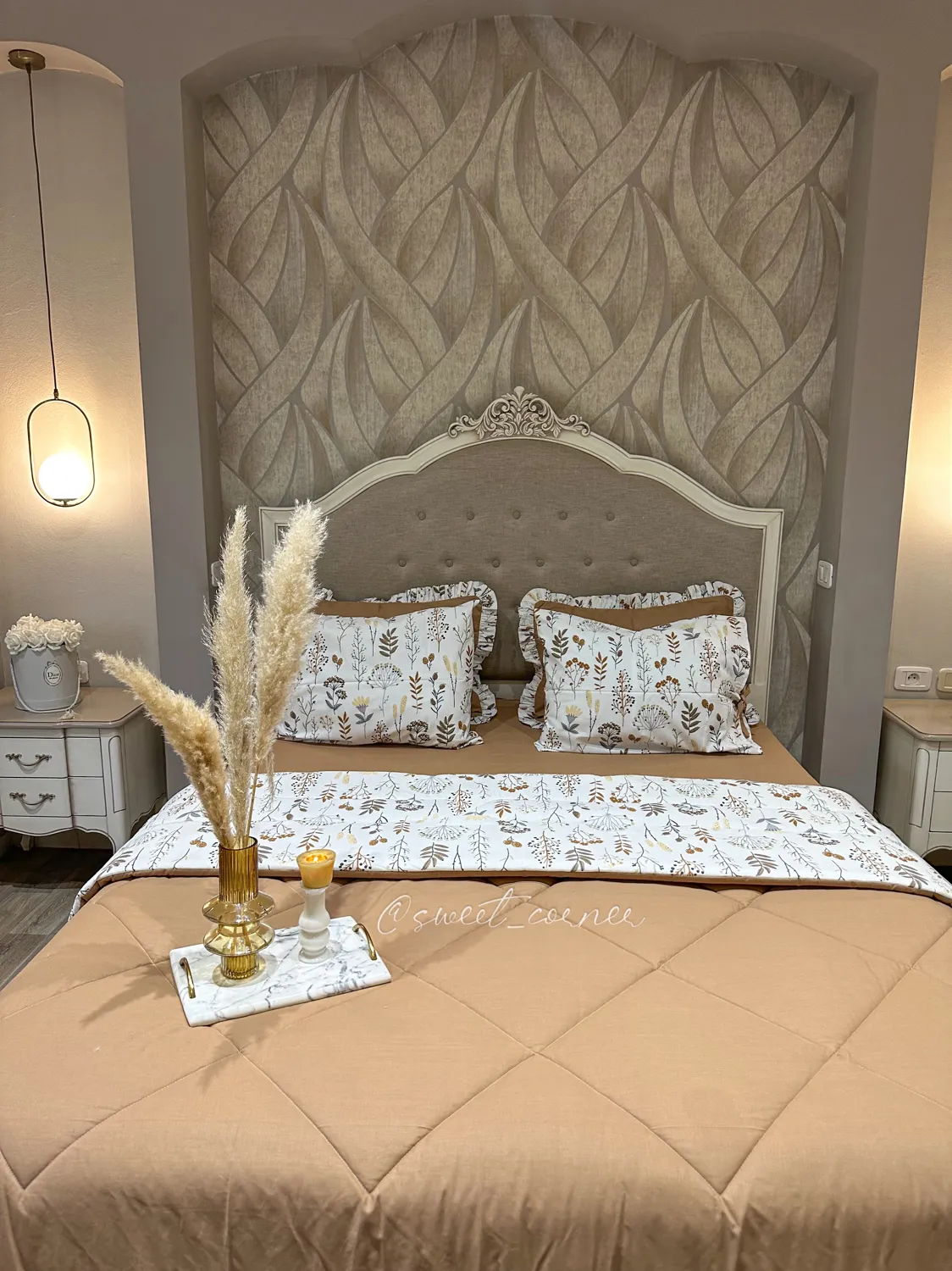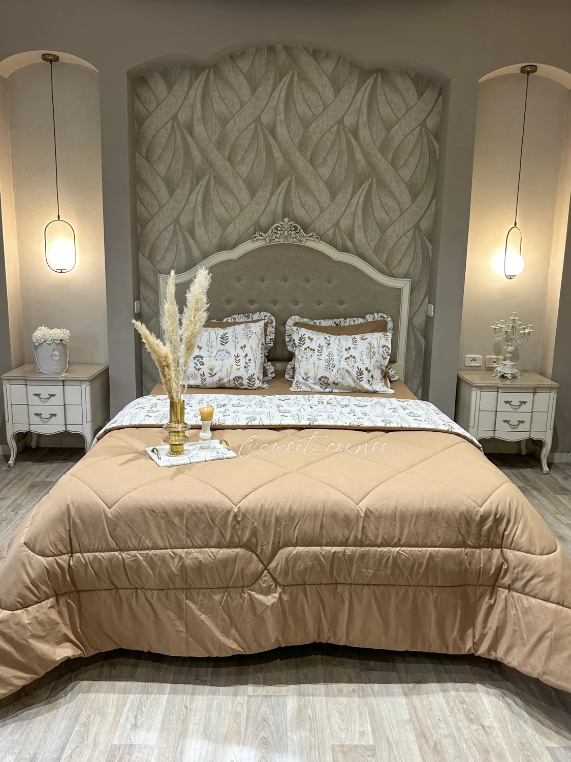 La couette 240×260 cm offre un recto caramel uni pour un style épuré et un verso fleuri pour une touche de romantisme.