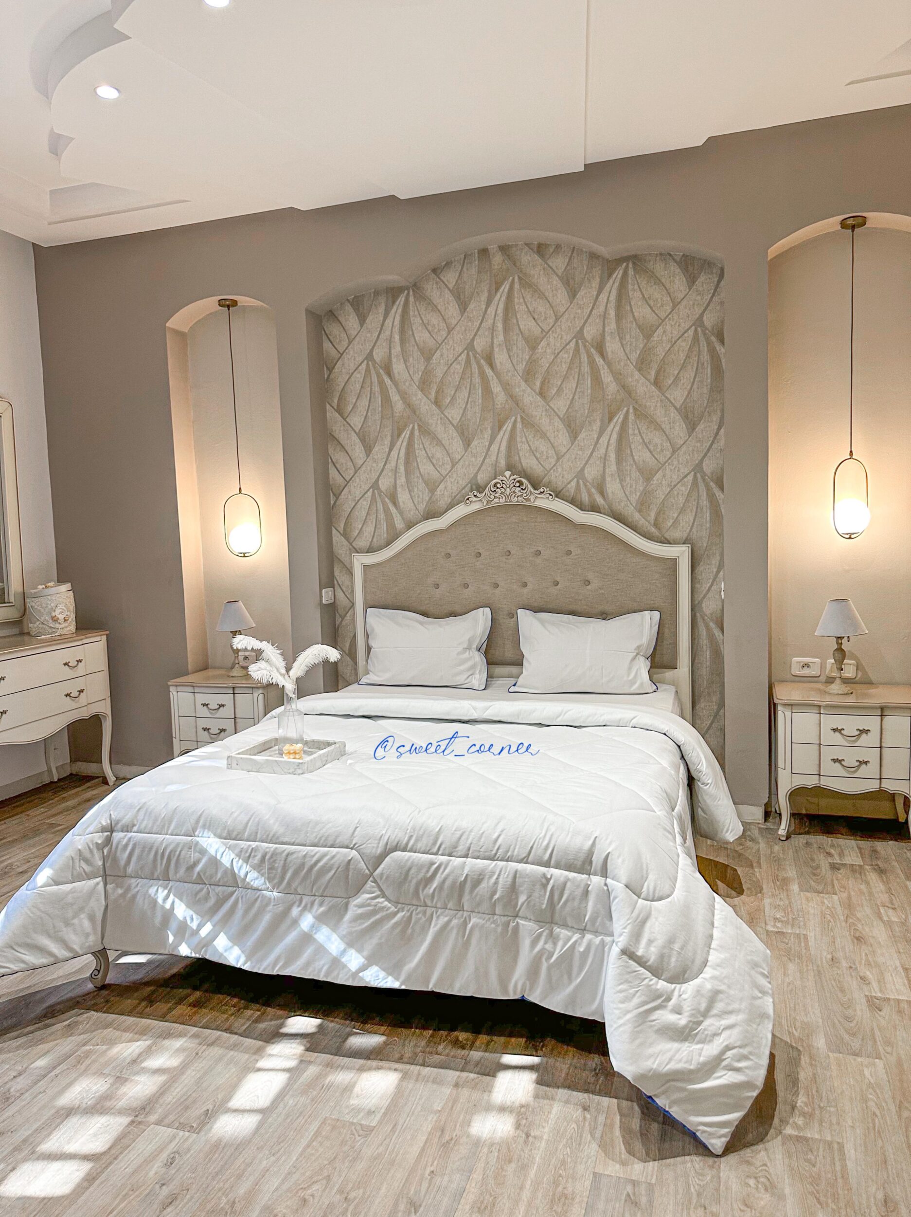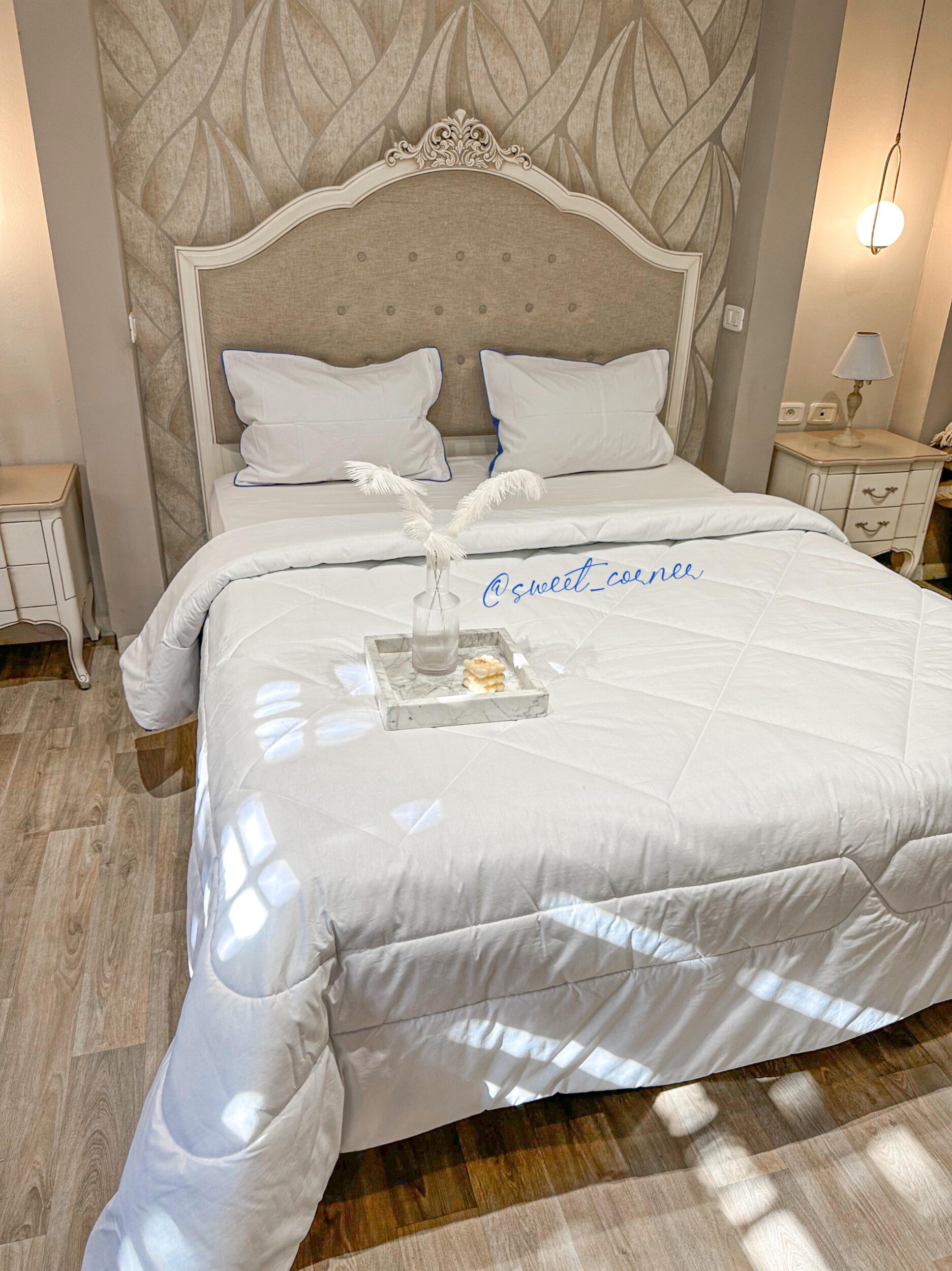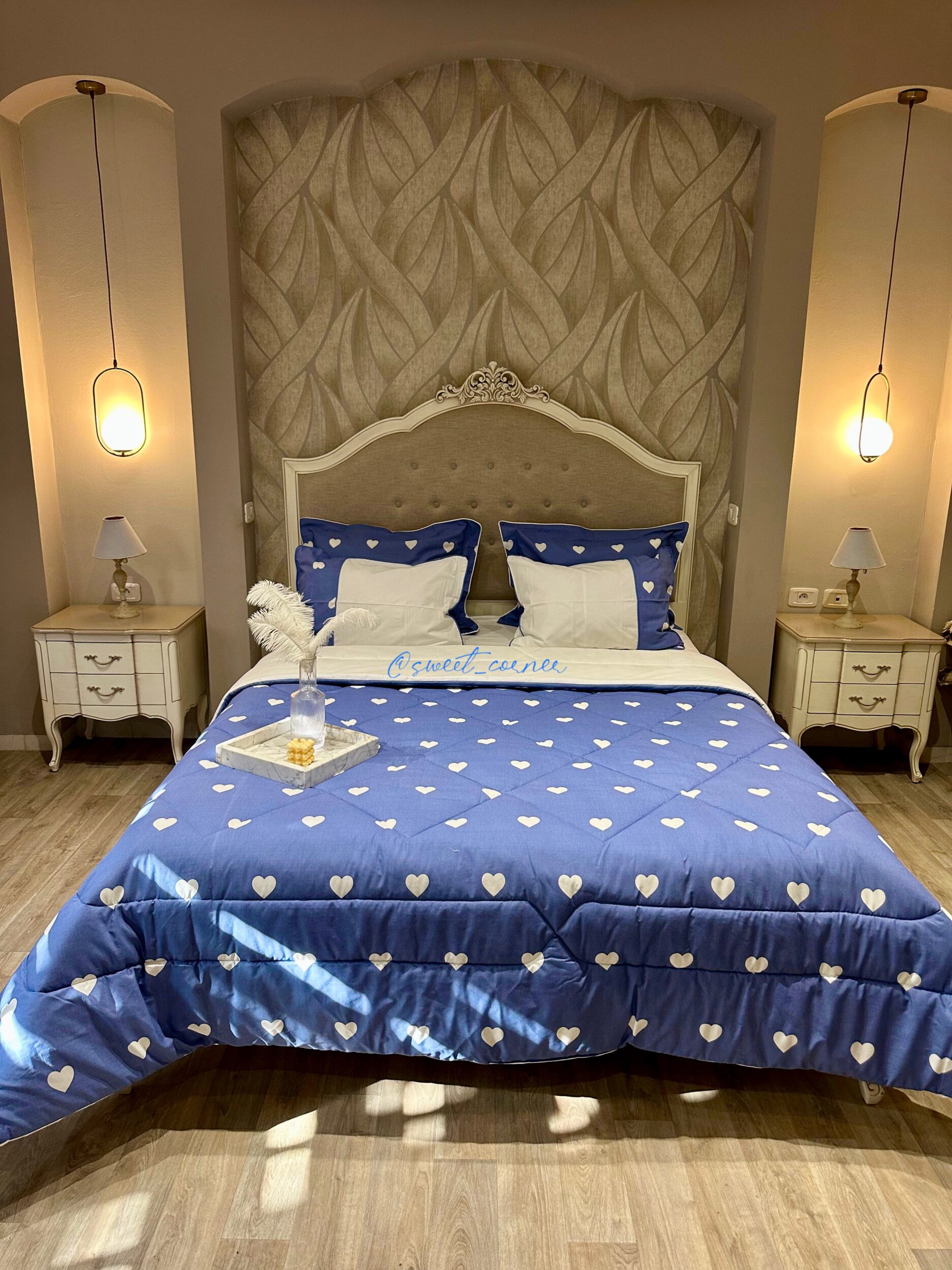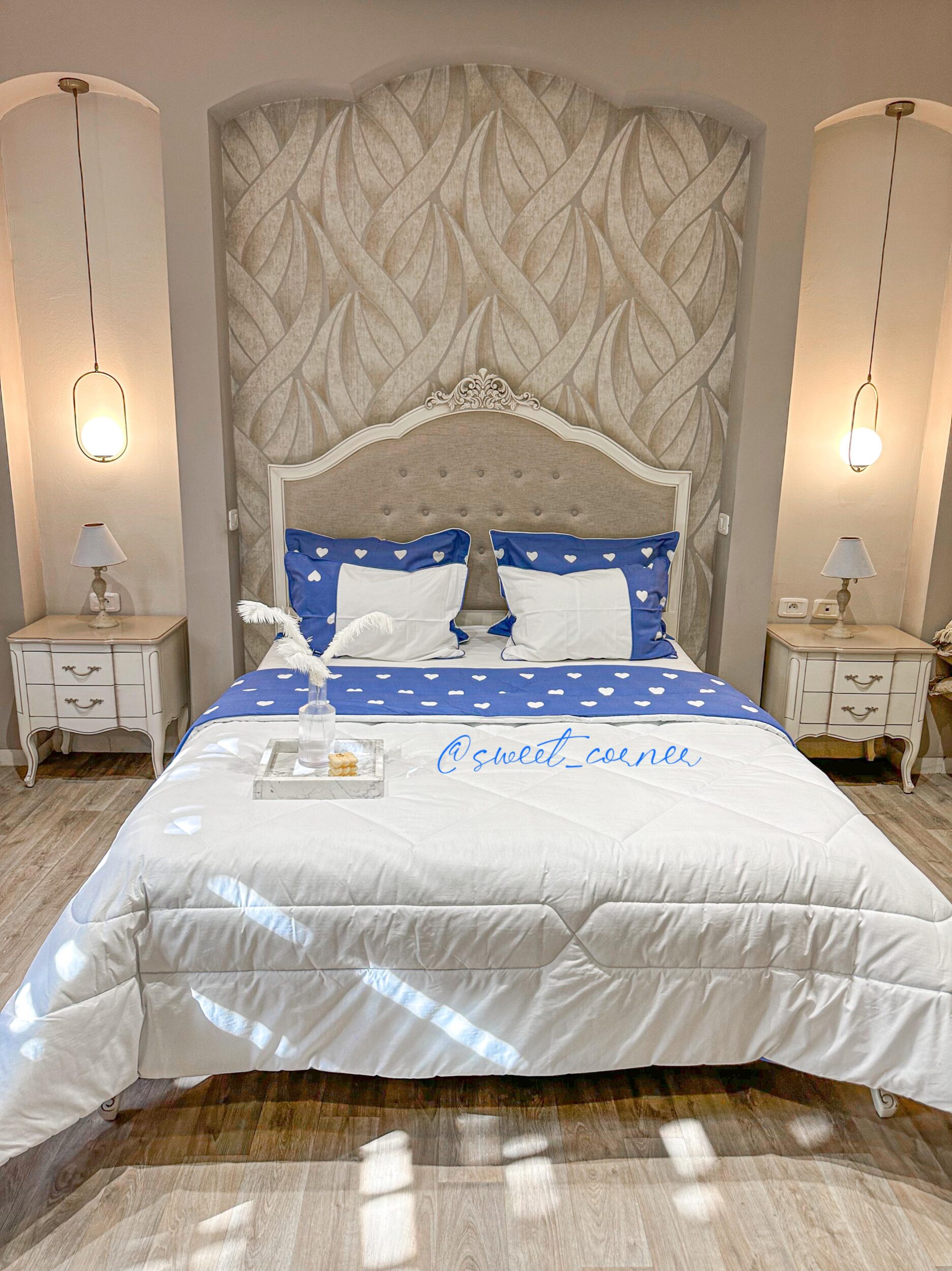 Parure de lit Saphir Double Face : Craquez pour notre parure de lit réversible en coton doux et respirant. Une face blanche intemporelle et une face bleu rehaussée de cœurs blancs pour une touche romantique.