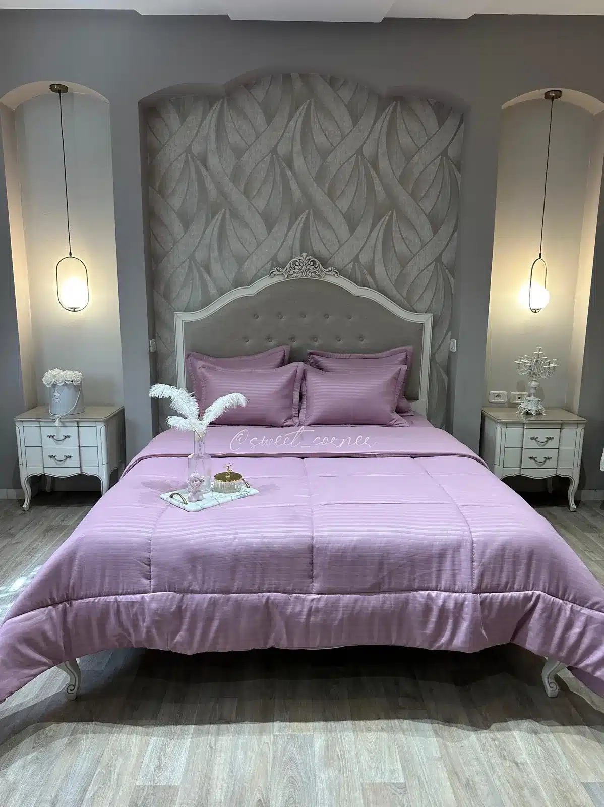Enveloppez vous de douceur et de chaleur avec cette couette king size VIOLET . Son toucher soyeux et sa légèreté vous procureront des nuits de sommeil réparateur.