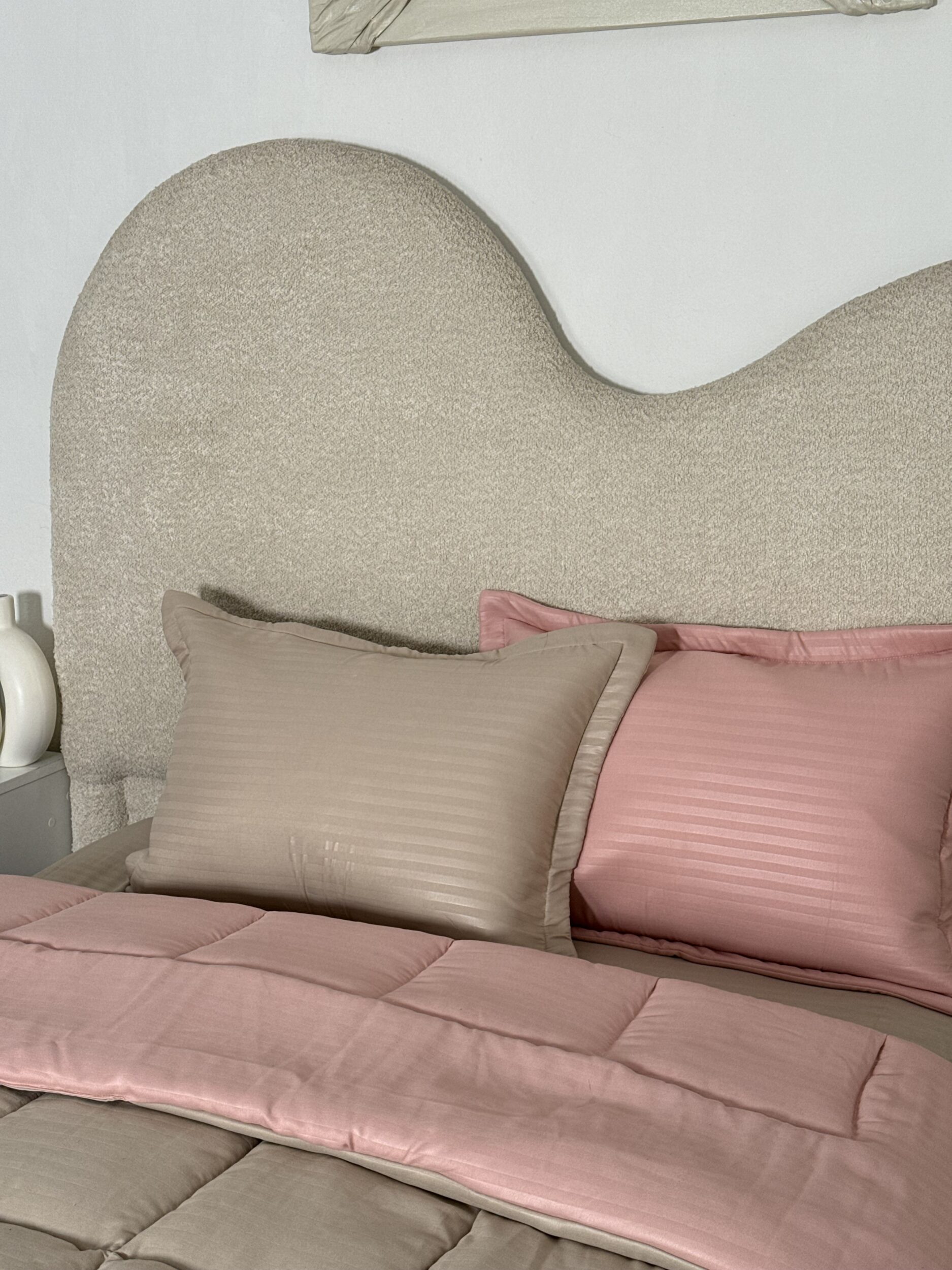- 2 taies d’oreiller (50x70cm) : Matelassées pour un confort optimal, elles s’accordent parfaitement avec la housse de couette.