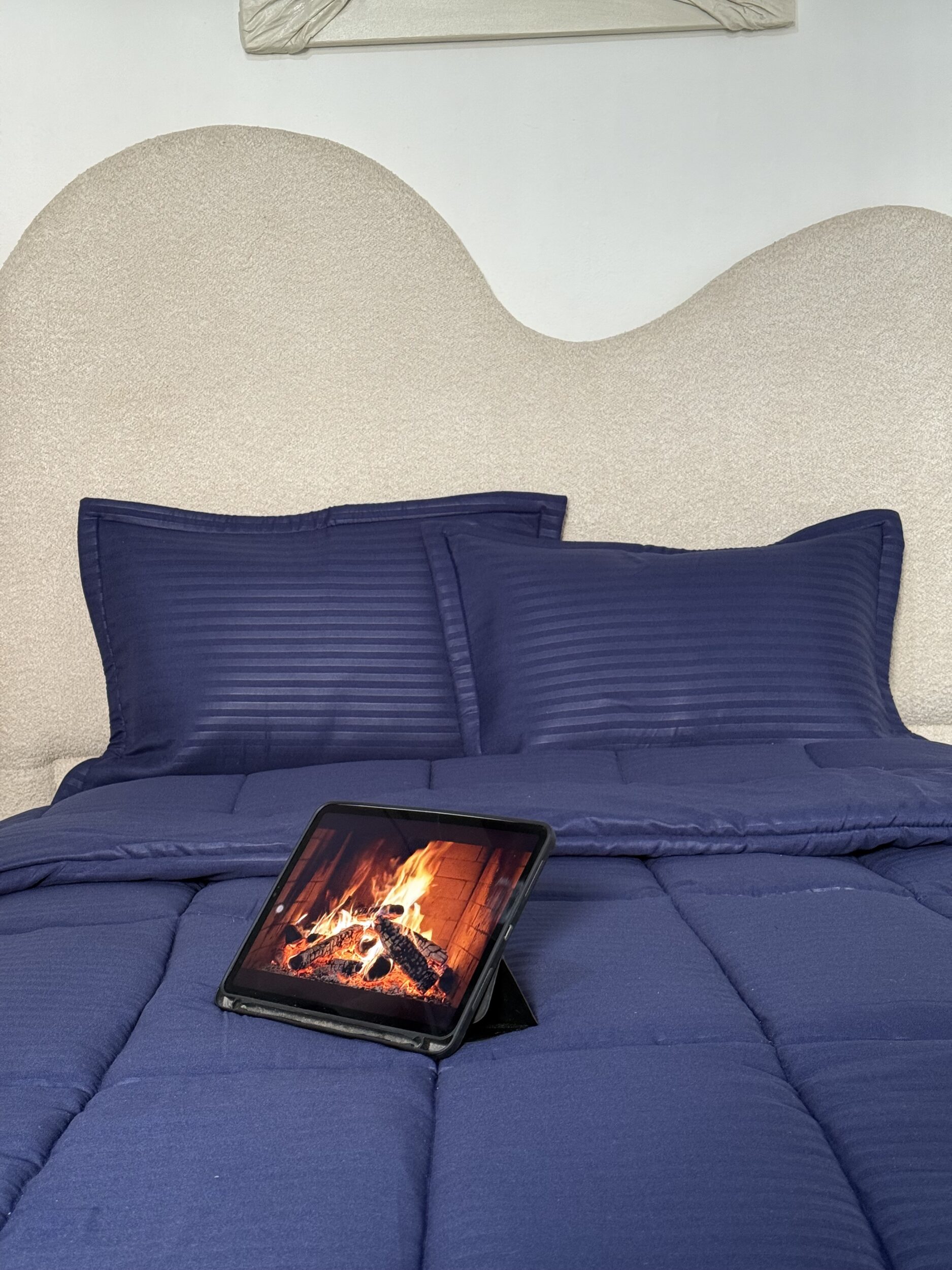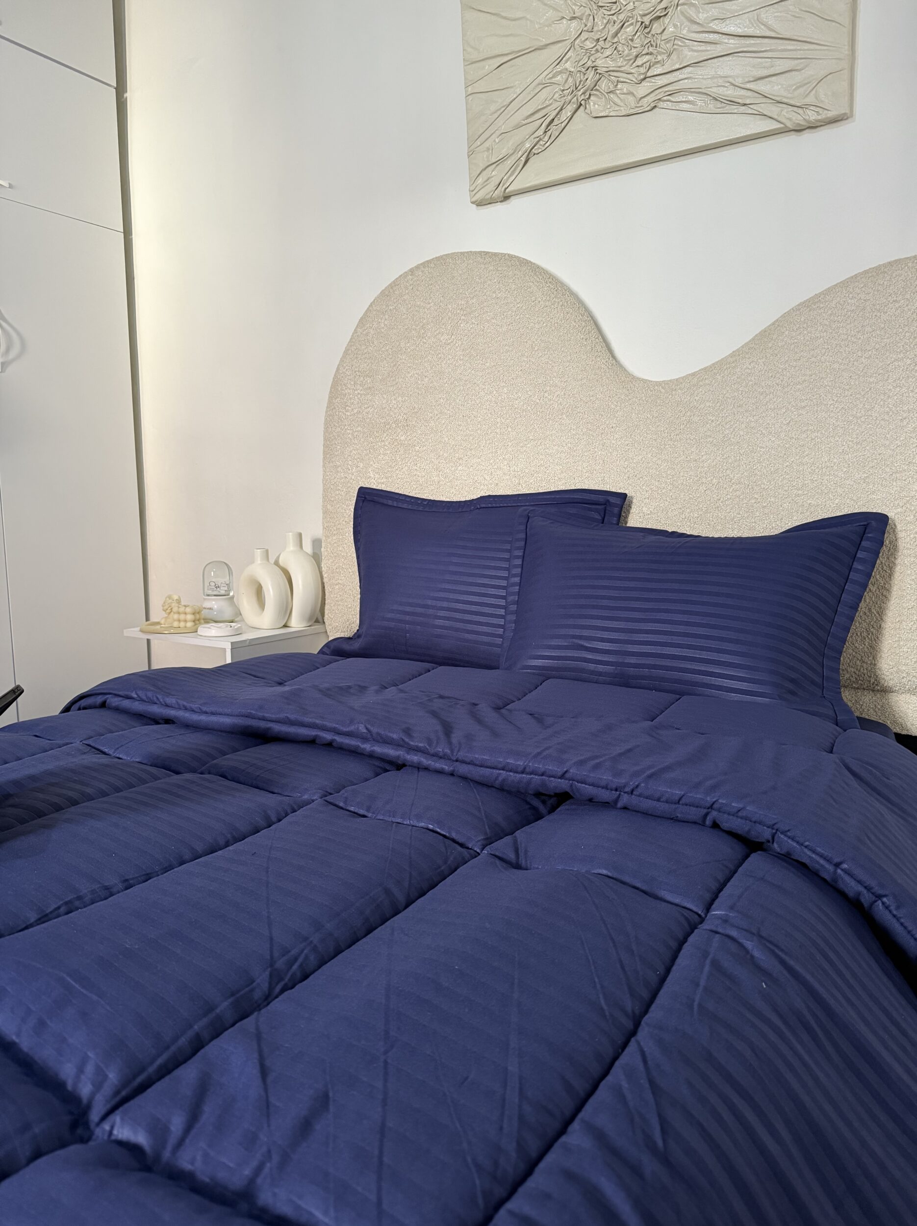 Couette de lit 4 pièces en microfibre rayée – Le luxe à votre portée