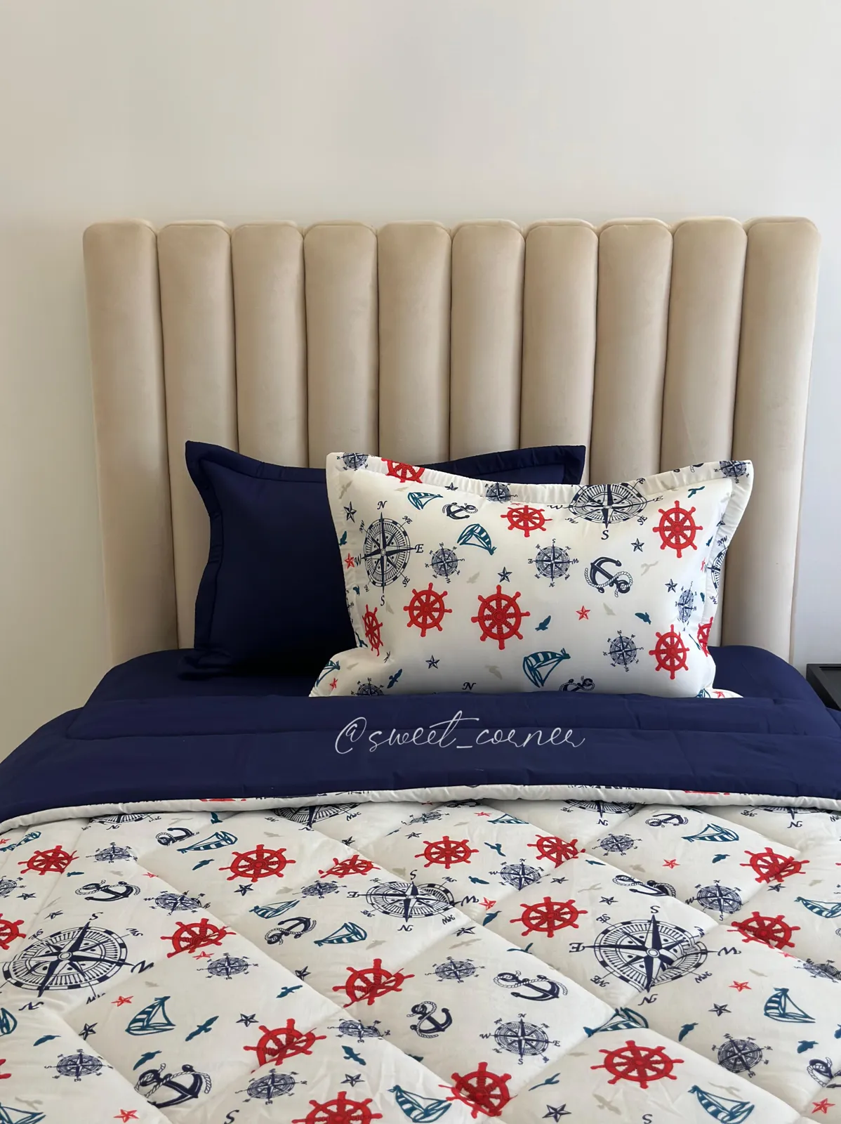 Plongez au cœur d’une aventure maritime avec notre parure de lit réversible en coton biologique. Cette pièce unique, à la fois élégante et ludique, transformera votre chambre en véritable cabane de marin.