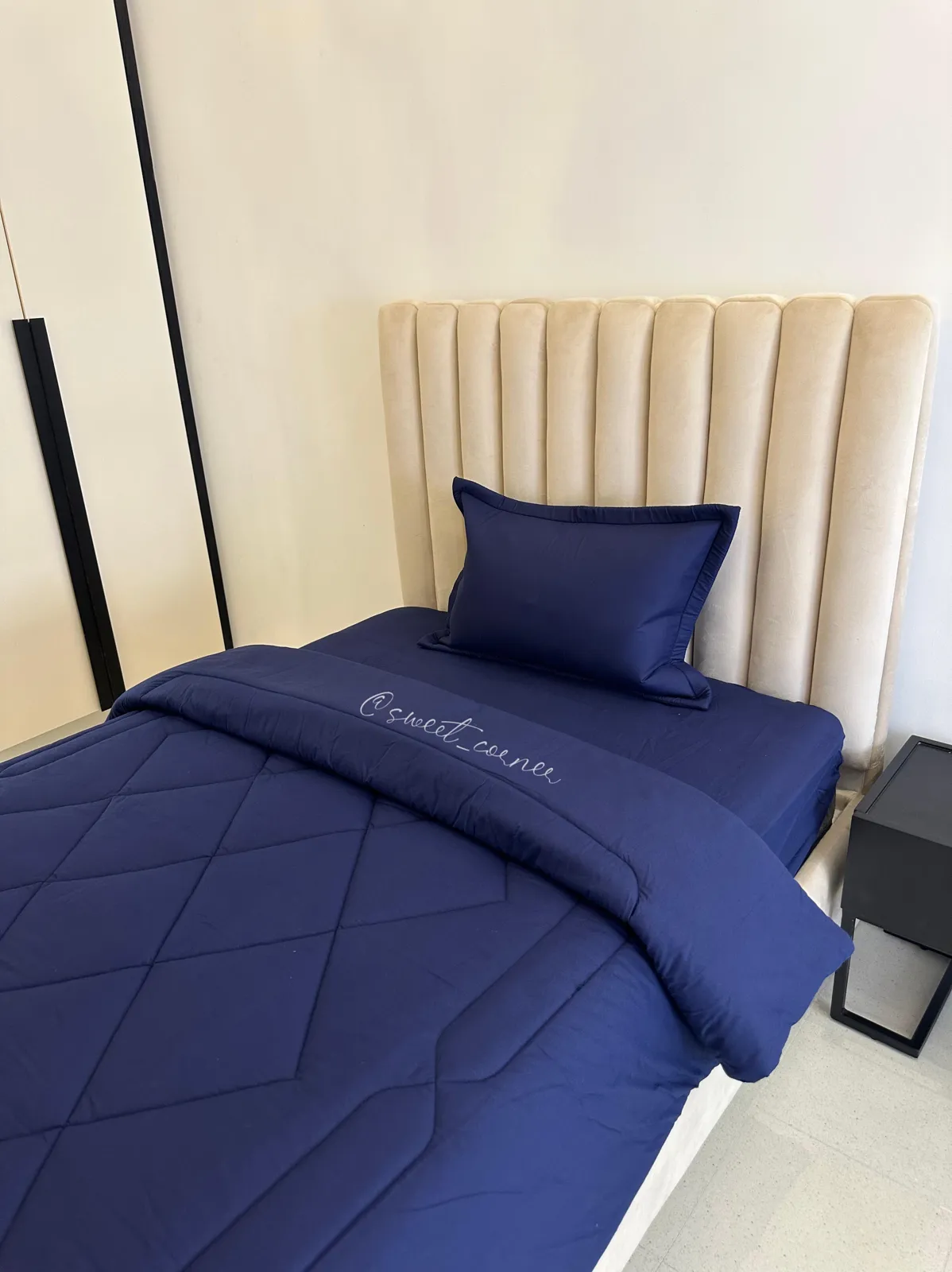 L’ensemble est complété par deux taies d’oreiller de 50×70 cm, l’une unie dans le ton bleu marine et l’autre reprenant les motifs de capitaines pour une harmonie parfaite. La housse de matelas de 120×190 cm, confectionnée dans le même coton biologique, protège efficacement votre matelas et ajoute une touche finale à votre parure.