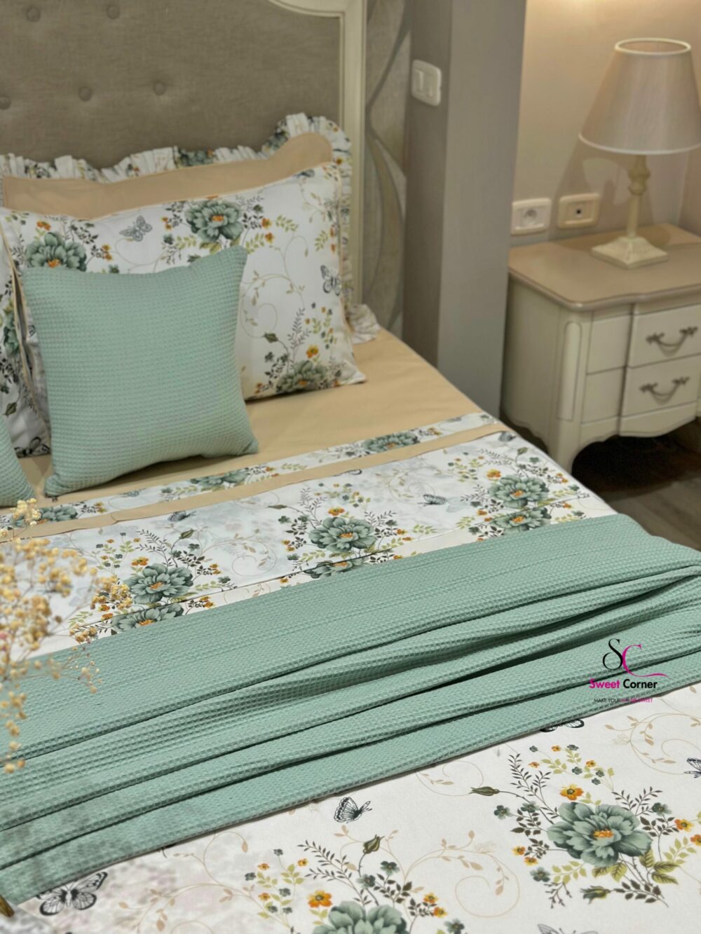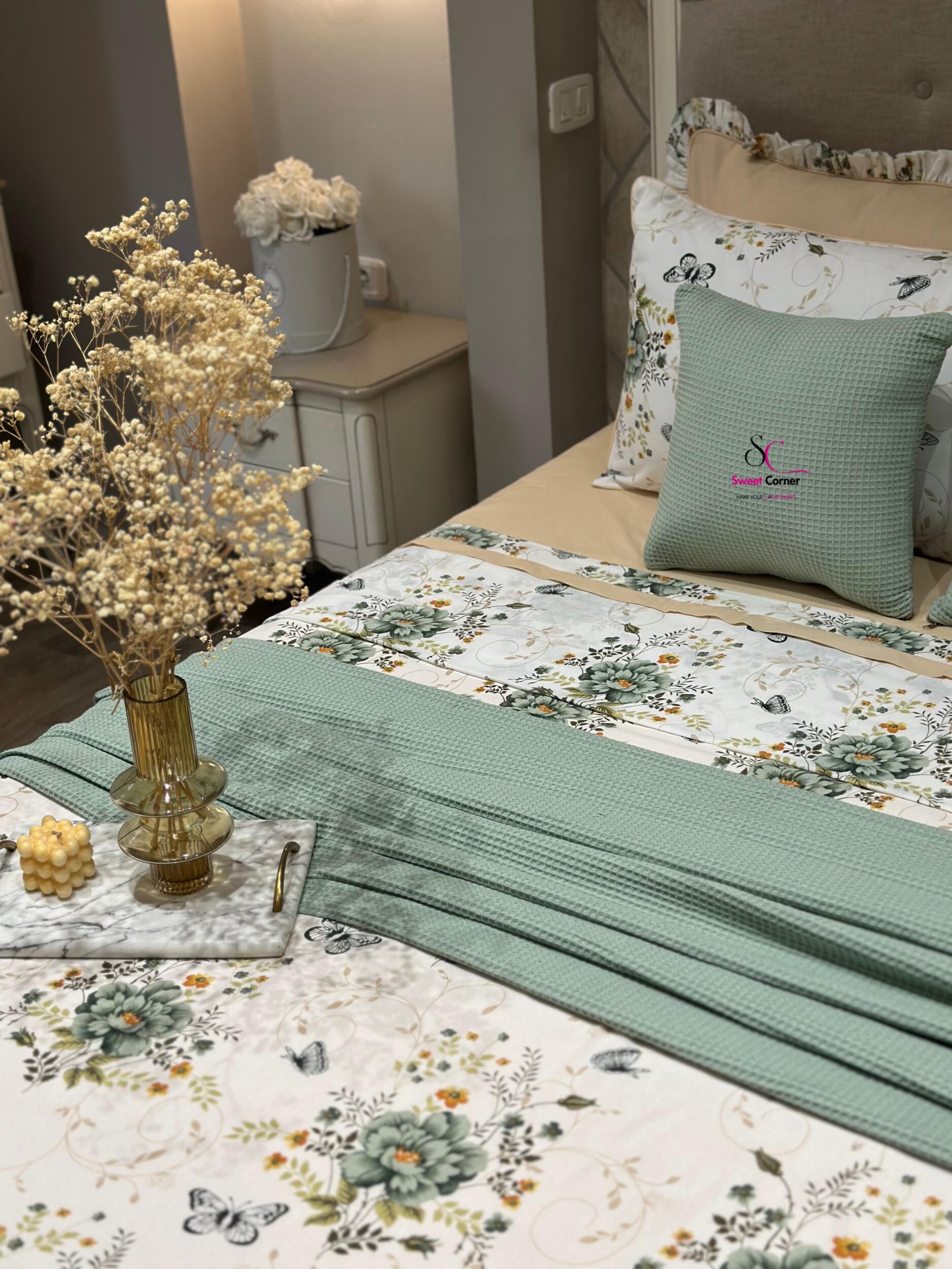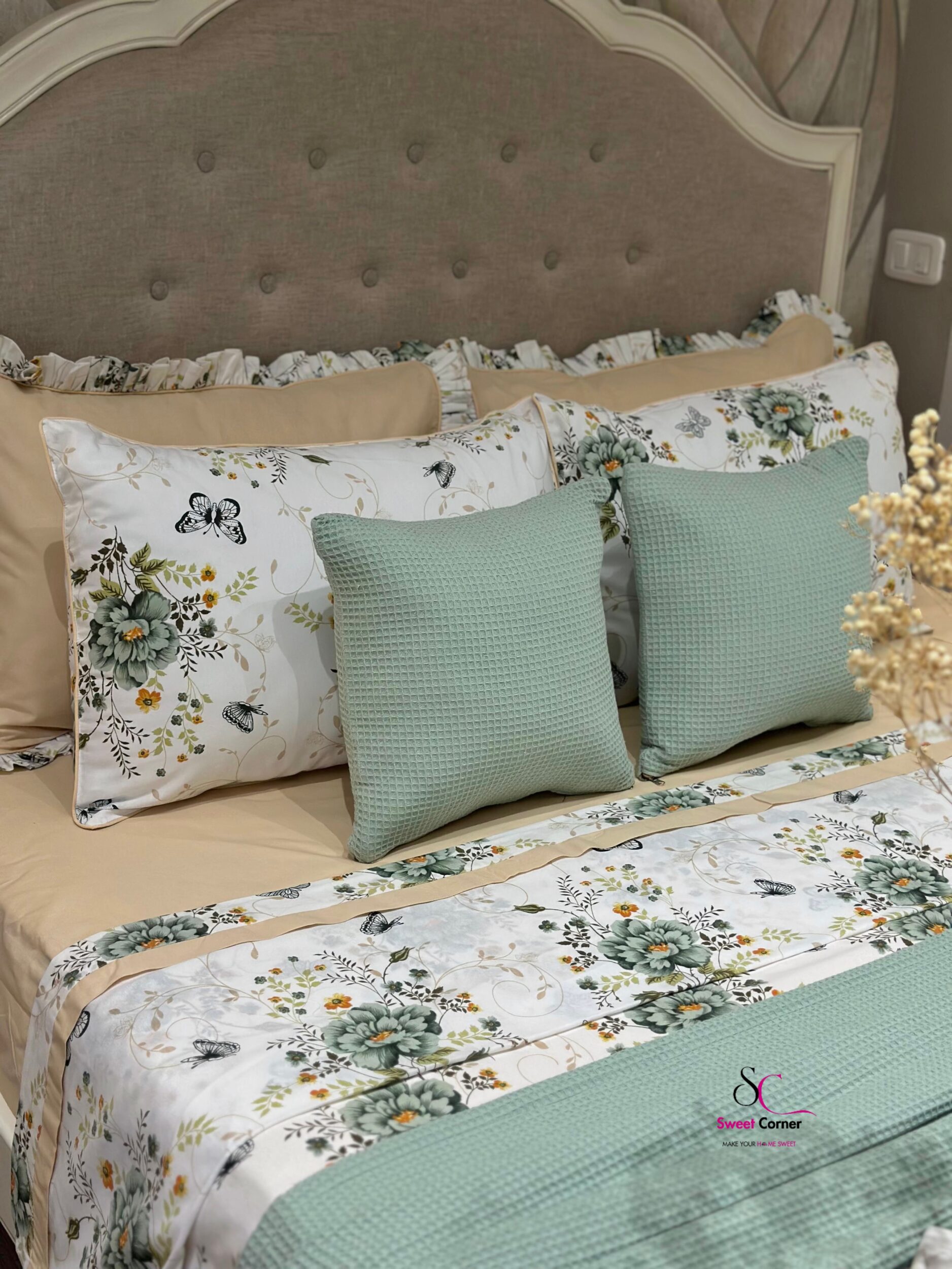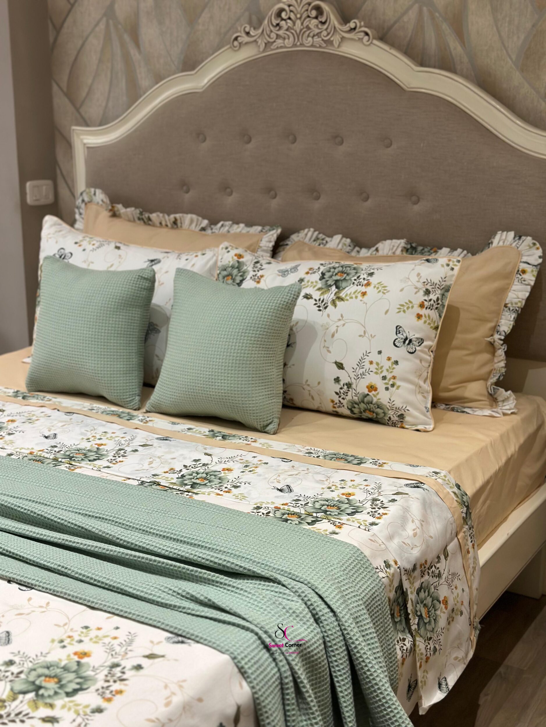 Apportez une touche de nature et d’élégance à votre chambre avec la parure inspirée par la fraîcheur des jardins printaniers. Cette parure associe la douceur du beige sable à la délicatesse du vert sauge pour créer un cocon apaisant et raffiné.