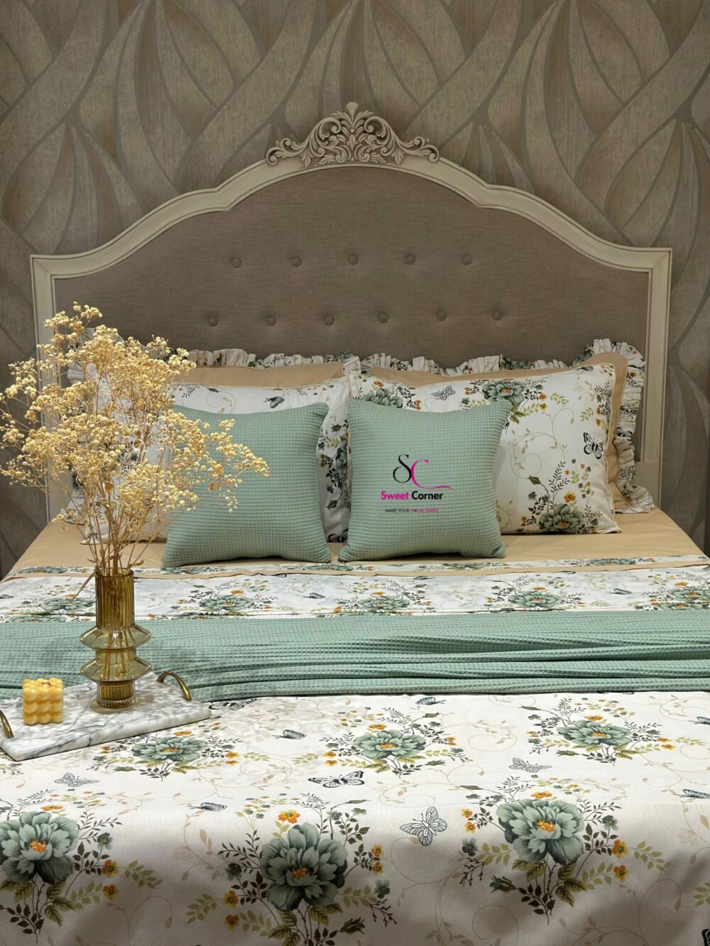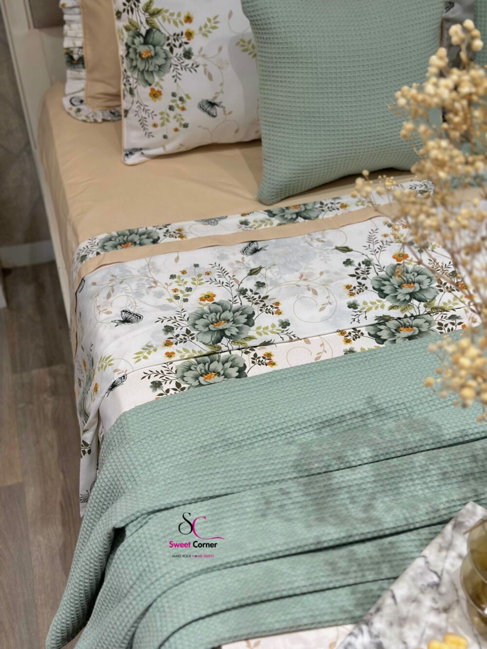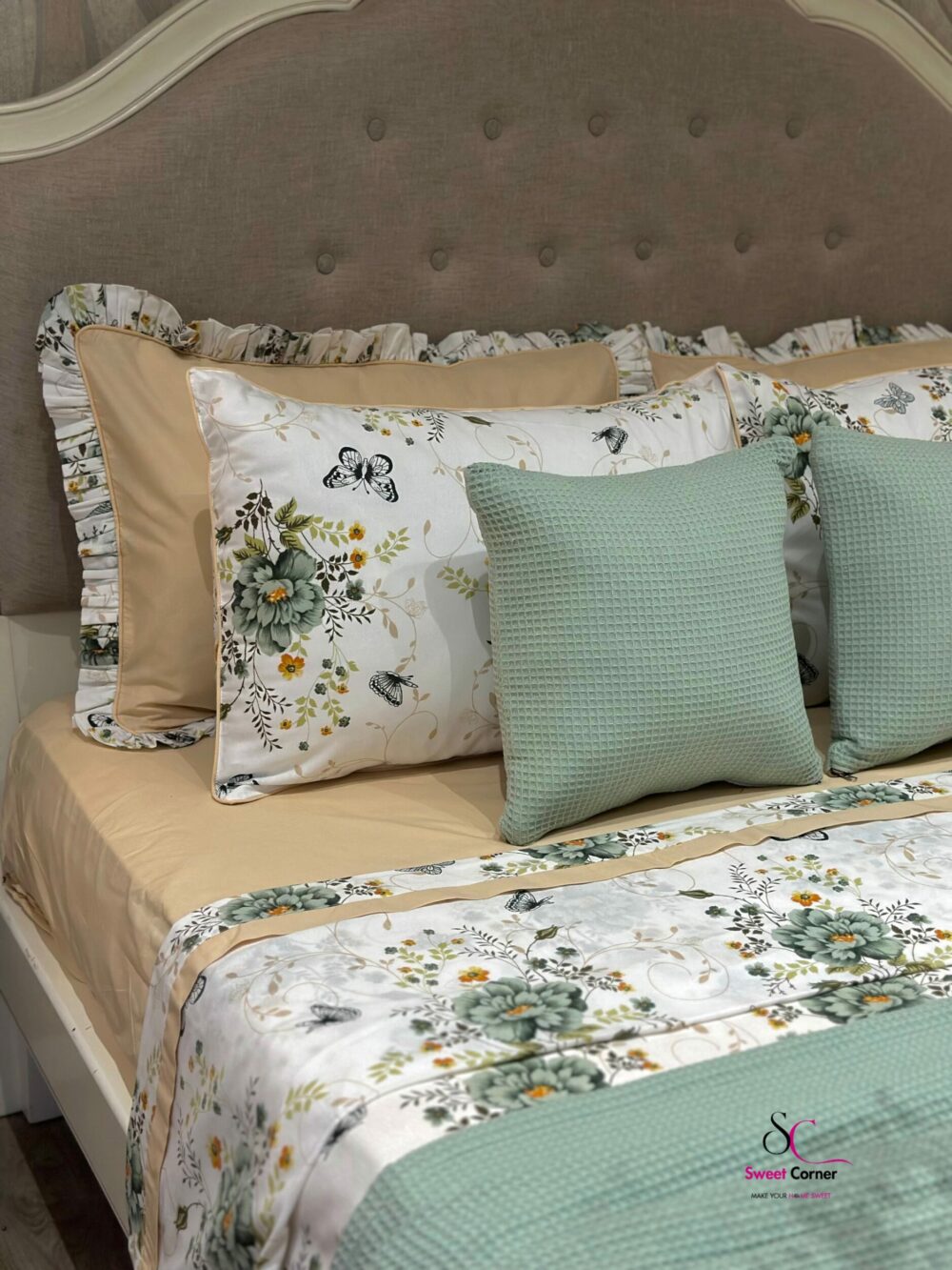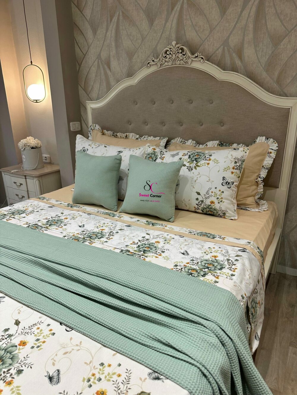 Apportez une touche de nature et d’élégance à votre chambre avec la parure inspirée par la fraîcheur des jardins printaniers. Cette parure associe la douceur du beige sable à la délicatesse du vert sauge pour créer un cocon apaisant et raffiné.