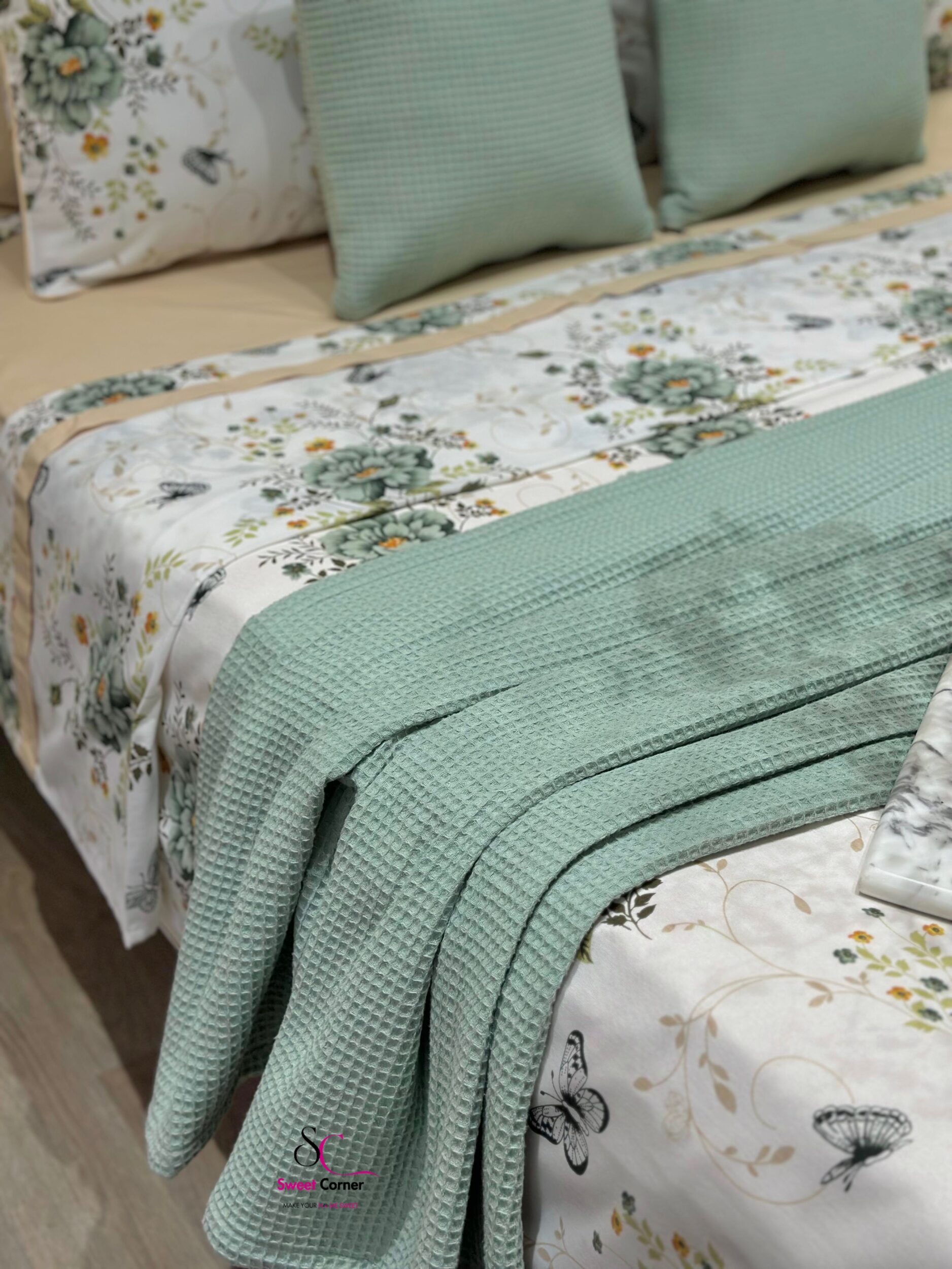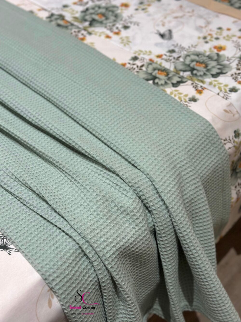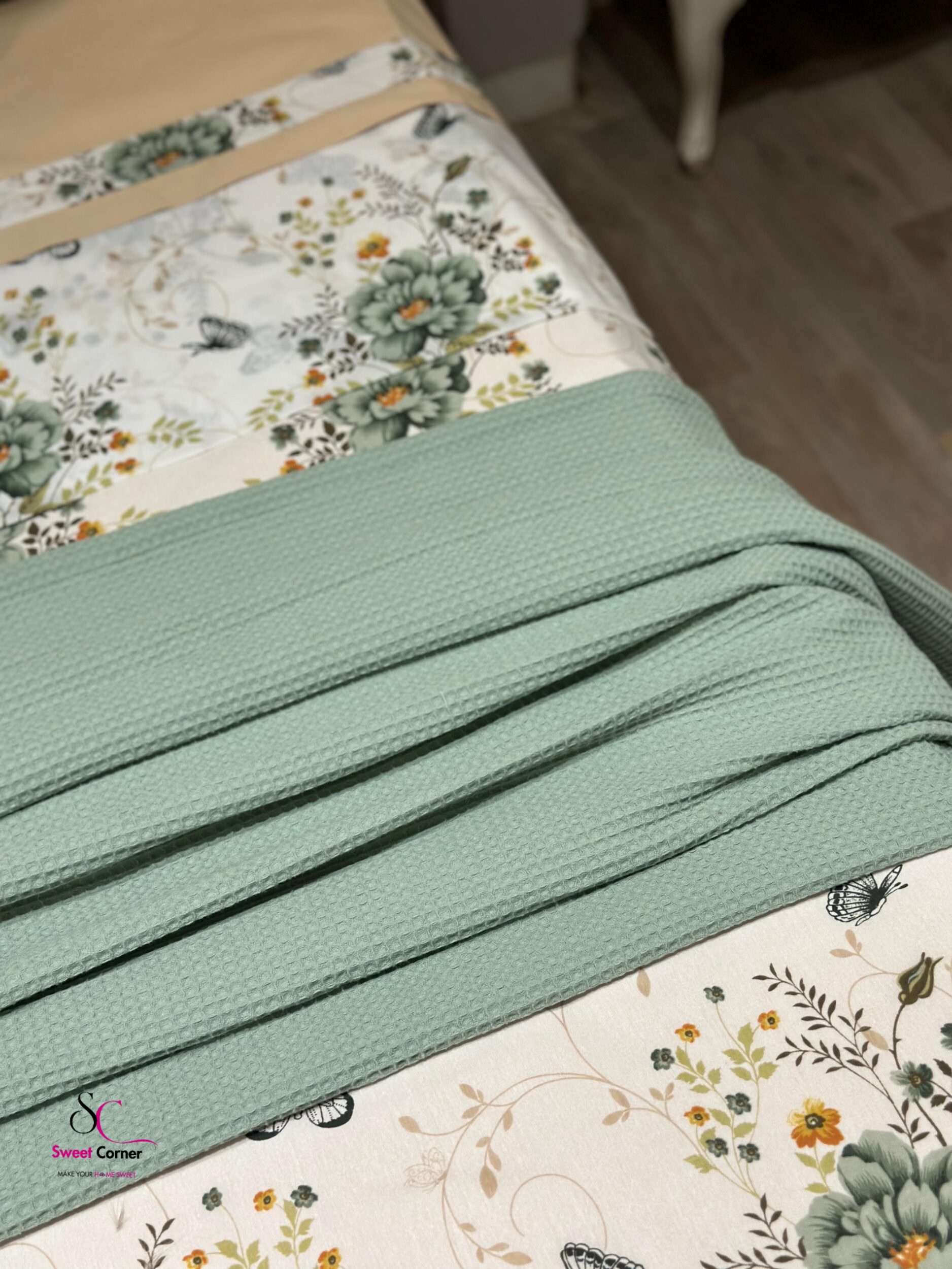 1 jeté de lit en nid d’abeille vert pastel 260×150