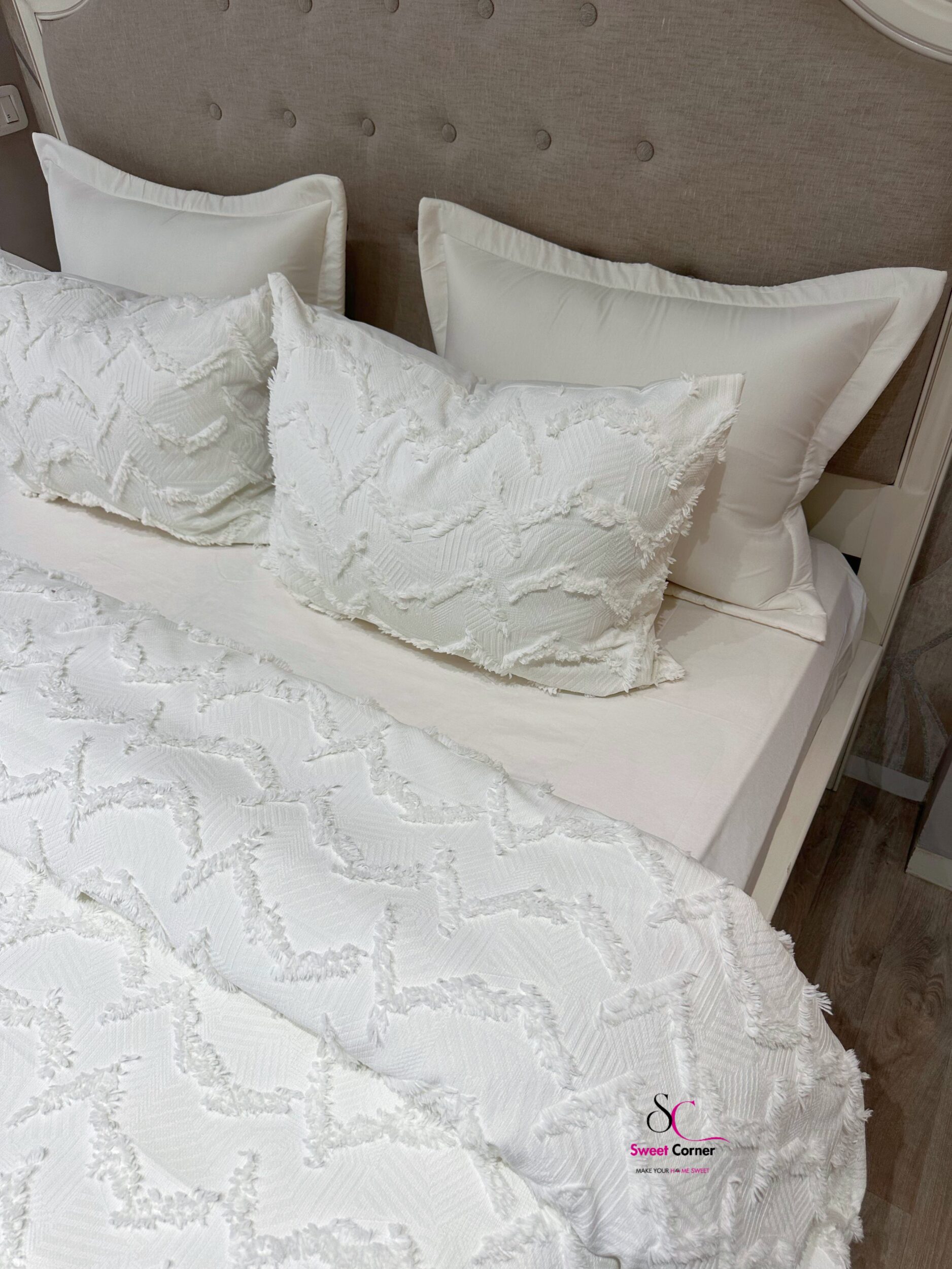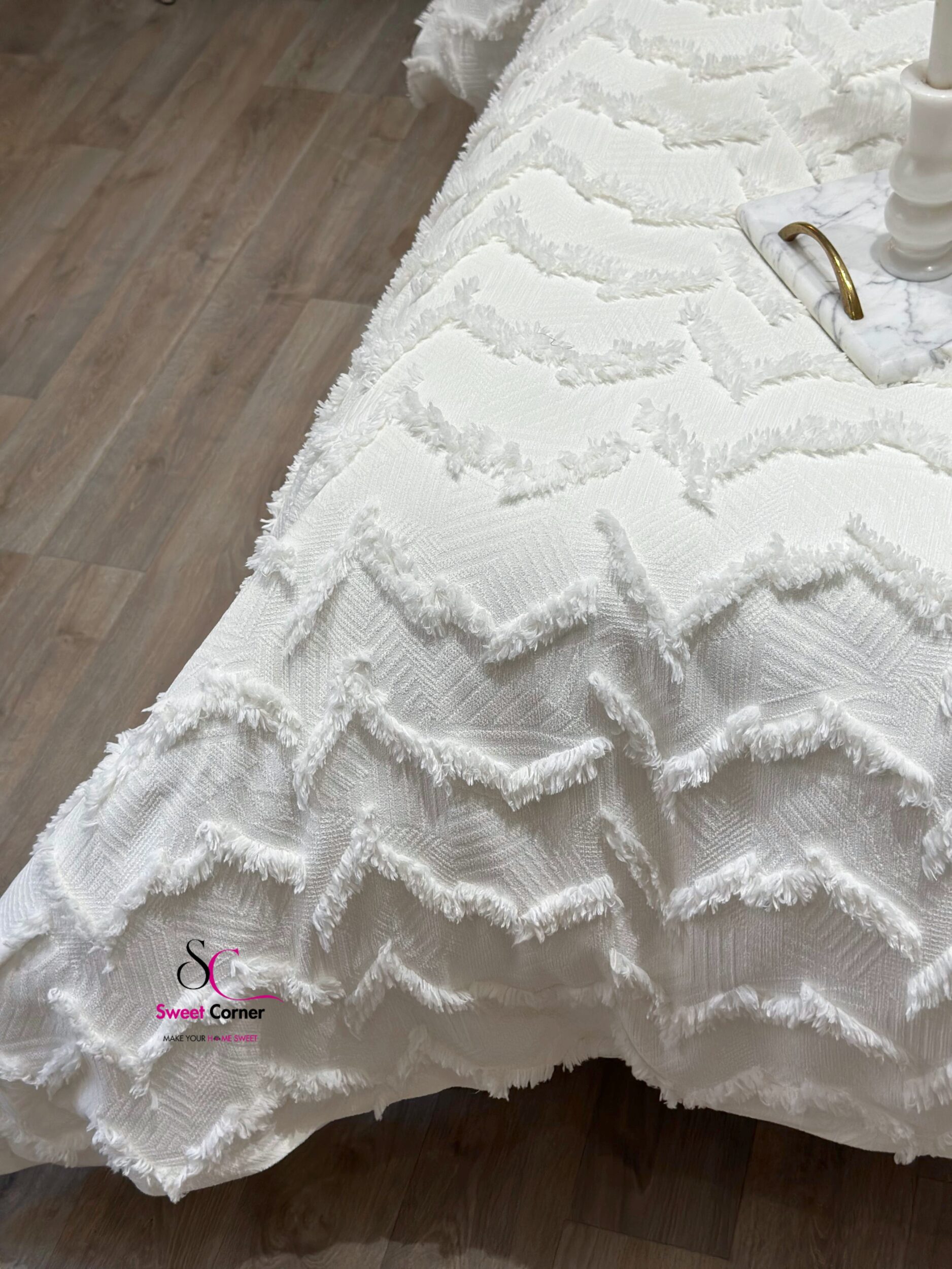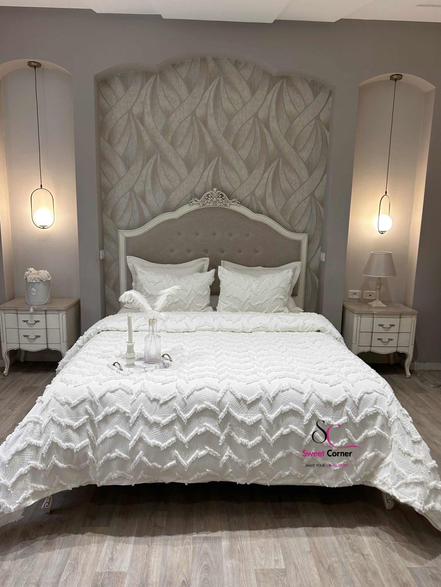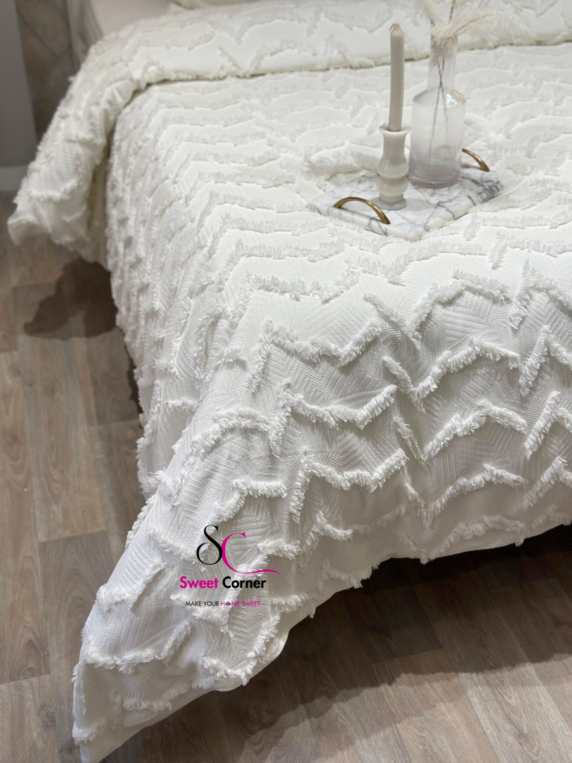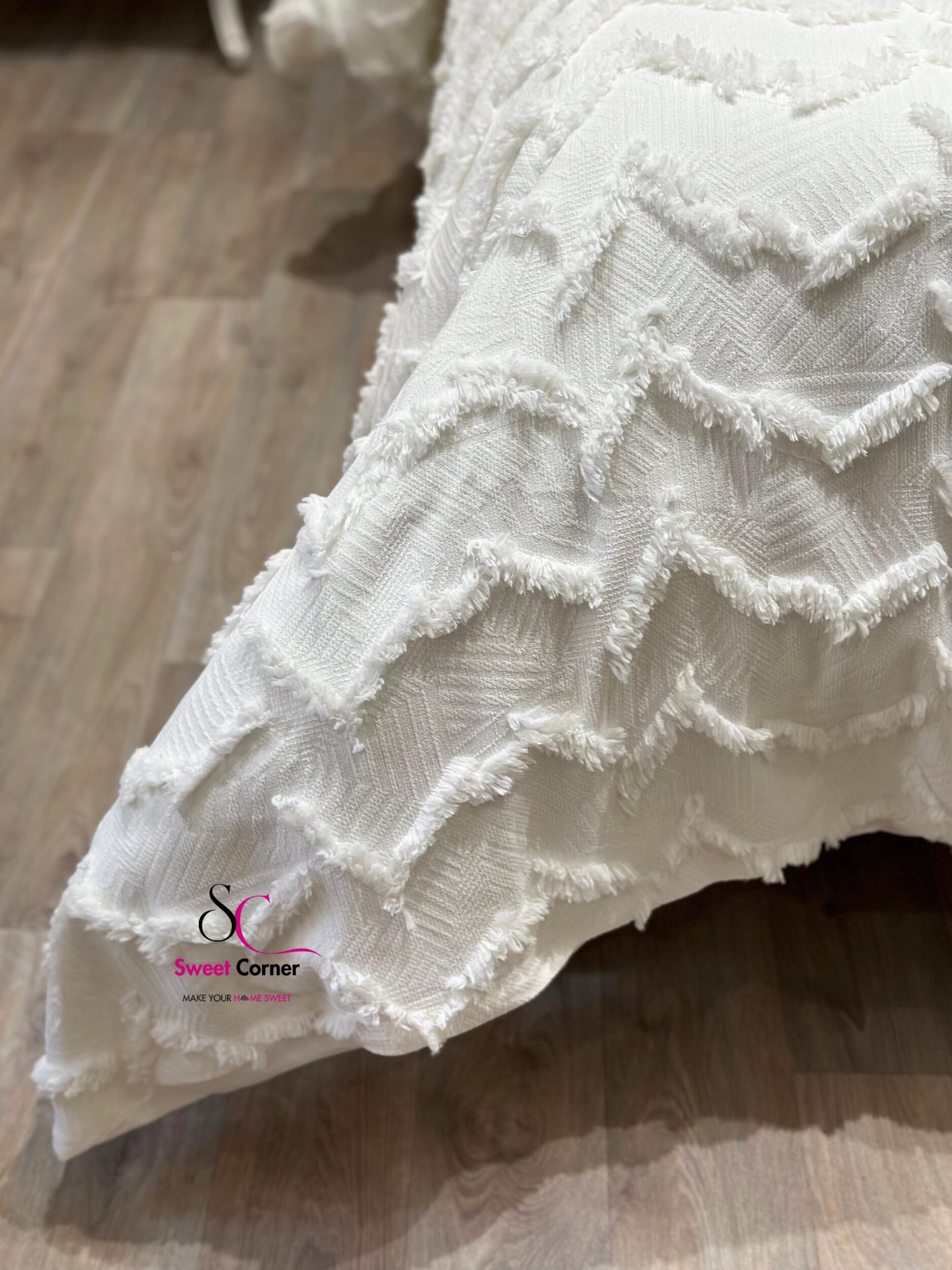 Plongez dans un cocon de douceur avec cette magnifique Housse de couette que vous pouvez utiliser comme parure de lit , ornée de motifs en chevrons texturés. Son tissu délicatement gaufré et ses finitions en franges apportent une touche chic et bohème à votre chambre.