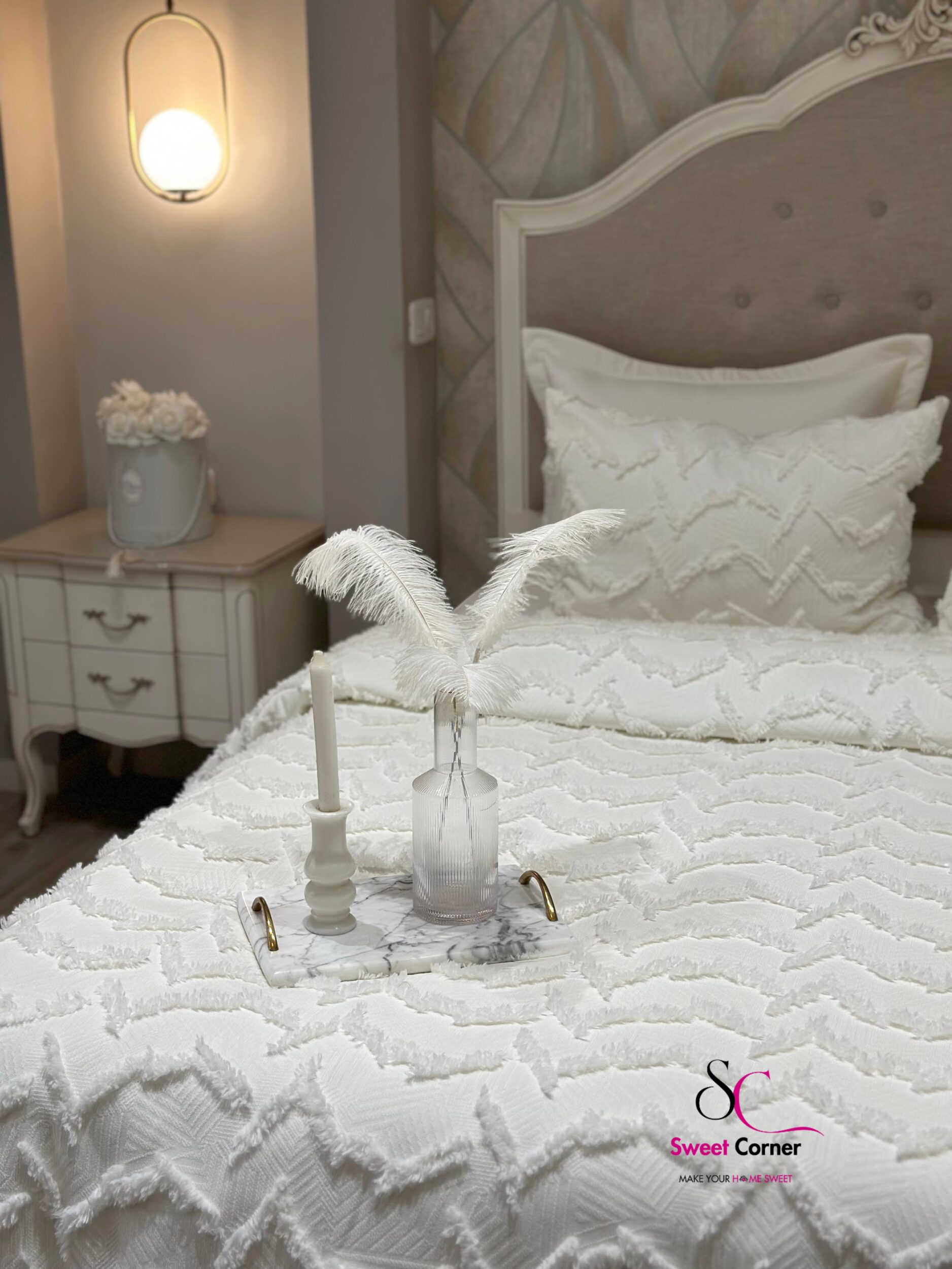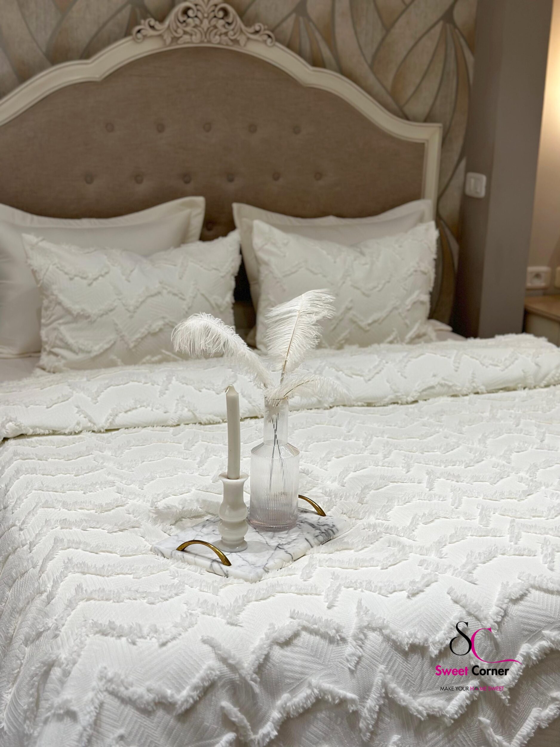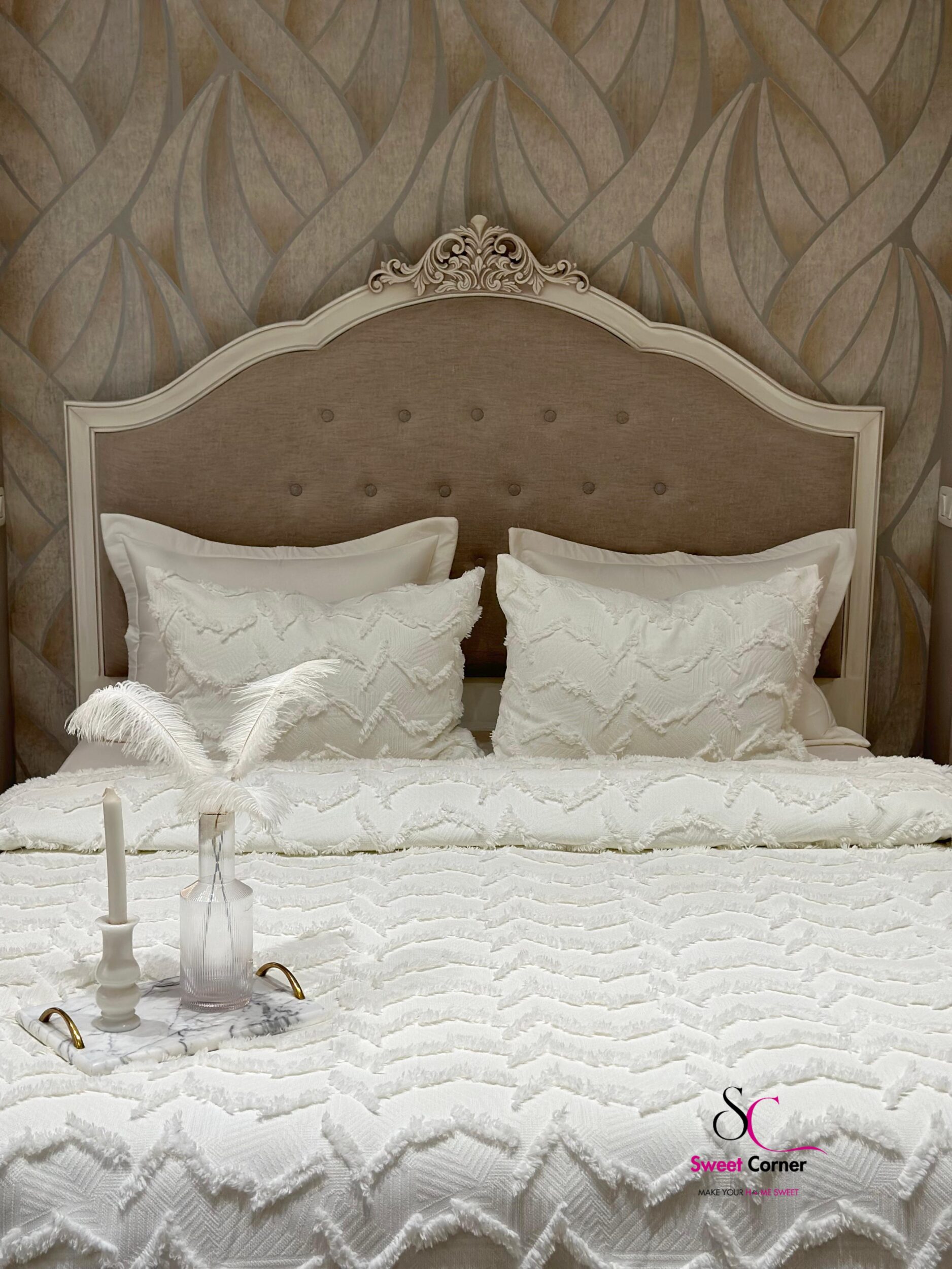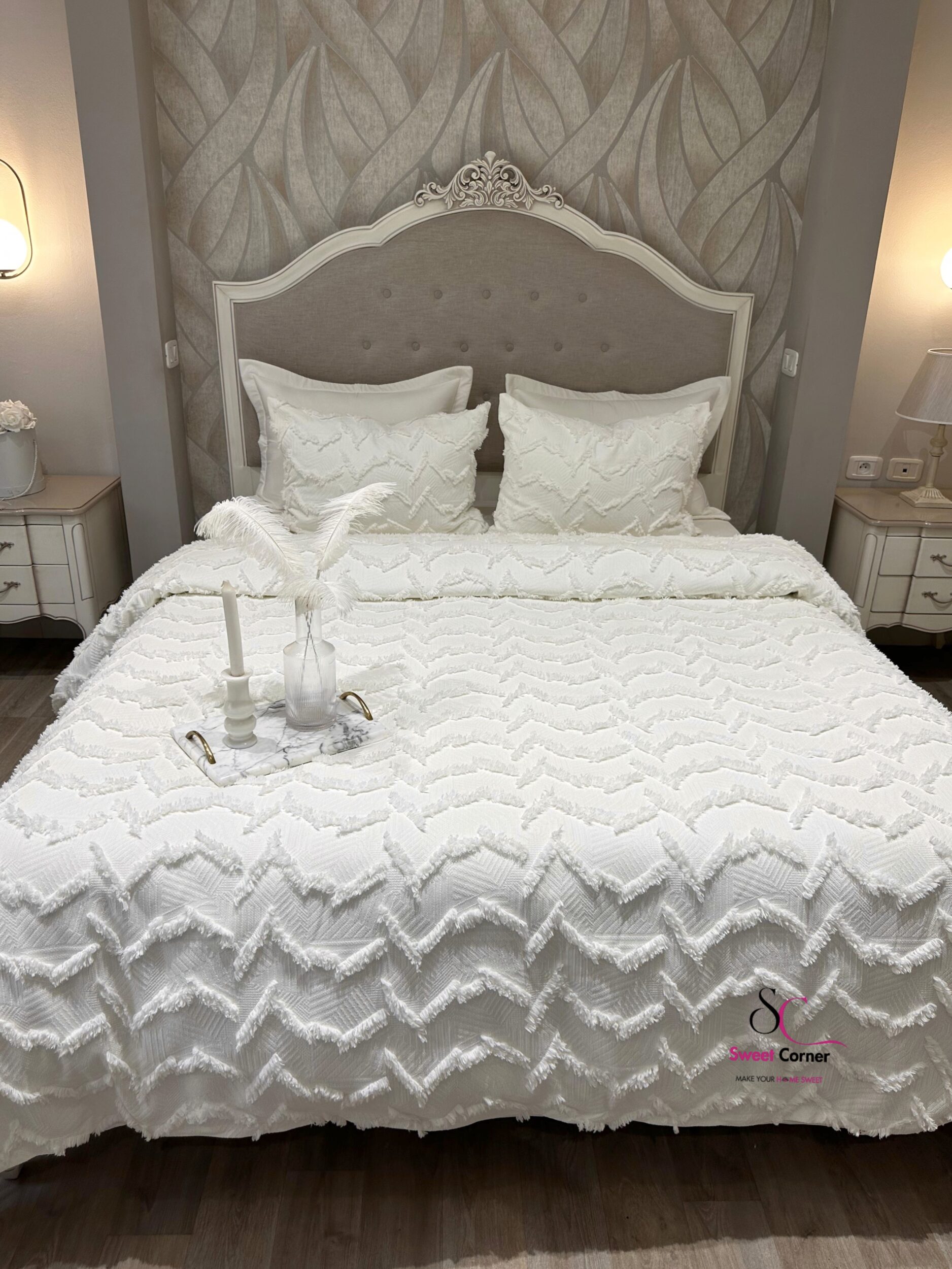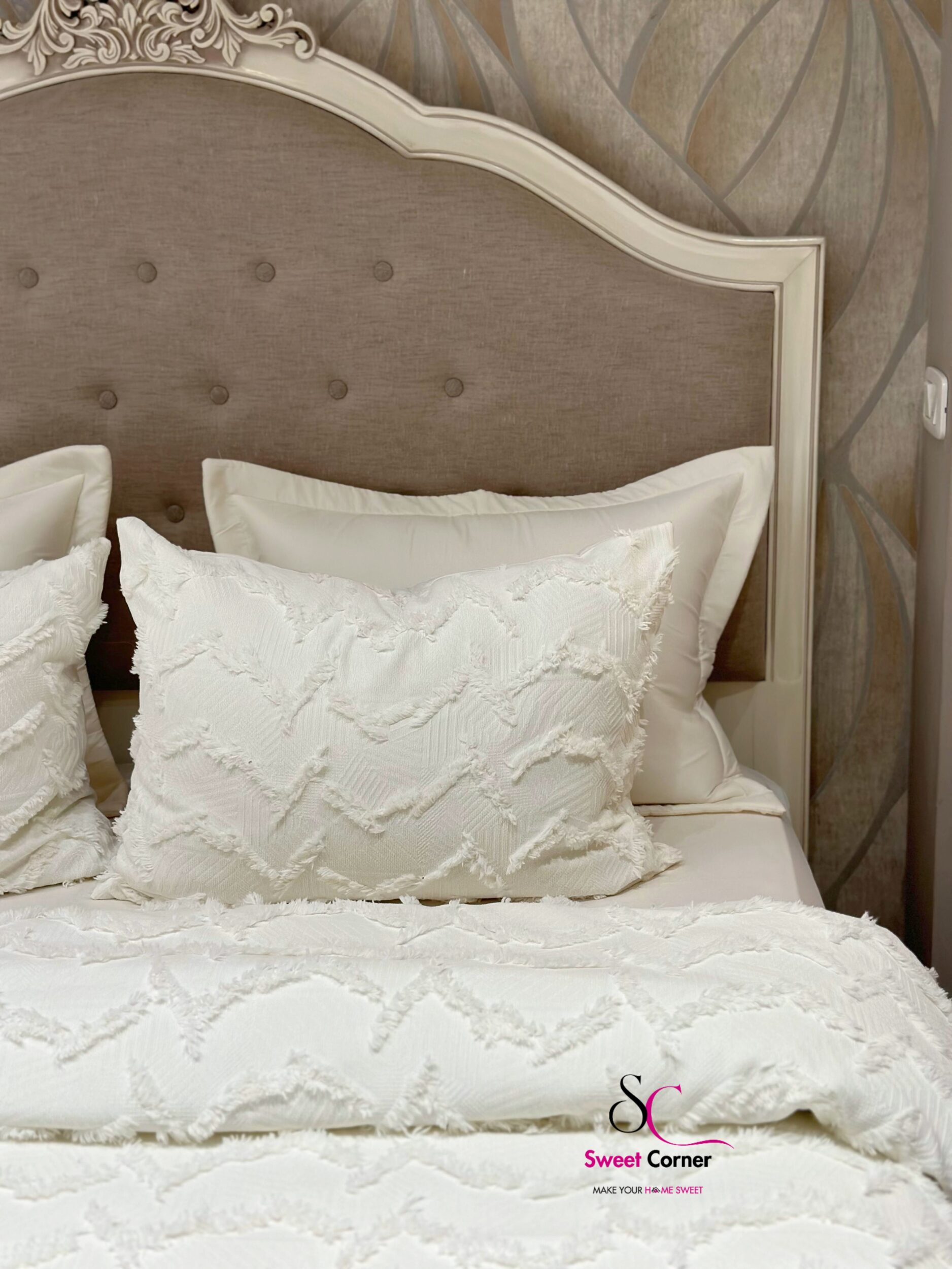 Plongez dans un cocon de douceur avec cette magnifique Housse de couette que vous pouvez utiliser comme parure de lit , ornée de motifs en chevrons texturés. Son tissu délicatement gaufré et ses finitions en franges apportent une touche chic et bohème à votre chambre.