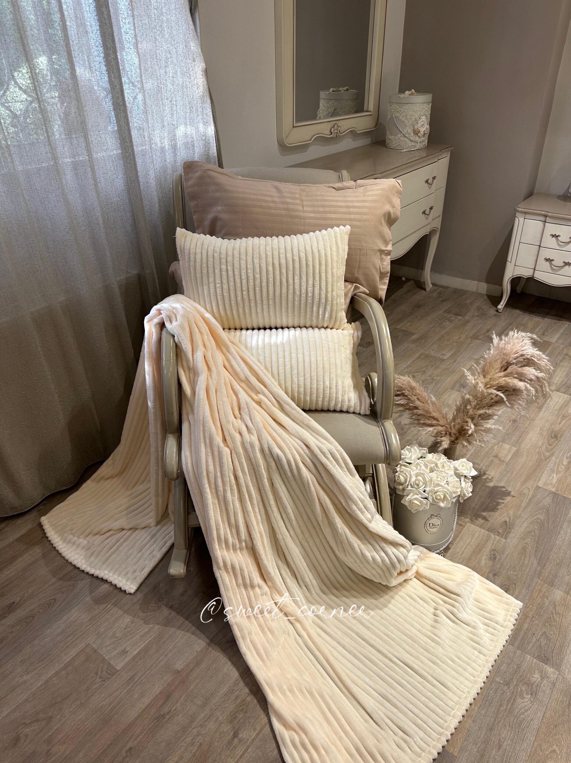 Les rayures élégantes sur fond blanc cassé apporteront une touche de modernité à votre décoration. Parfait pour se lover dans le canapé ou lit , ce jeté de lit trouvera également sa place au pied de votre lit.