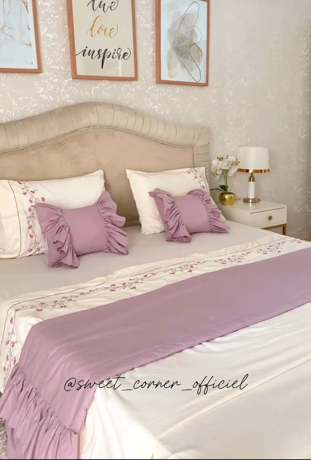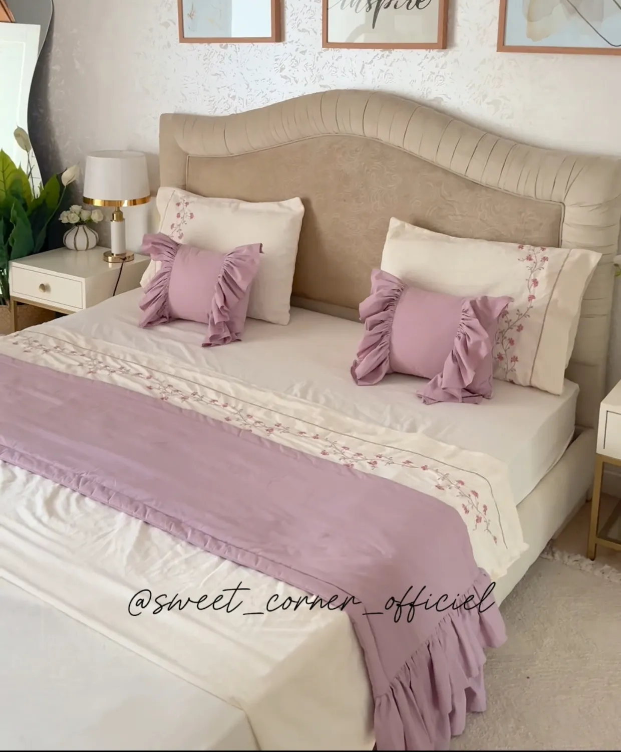 - Un chemin de lit avec volant pour parfaire la décoration de votre chambre.