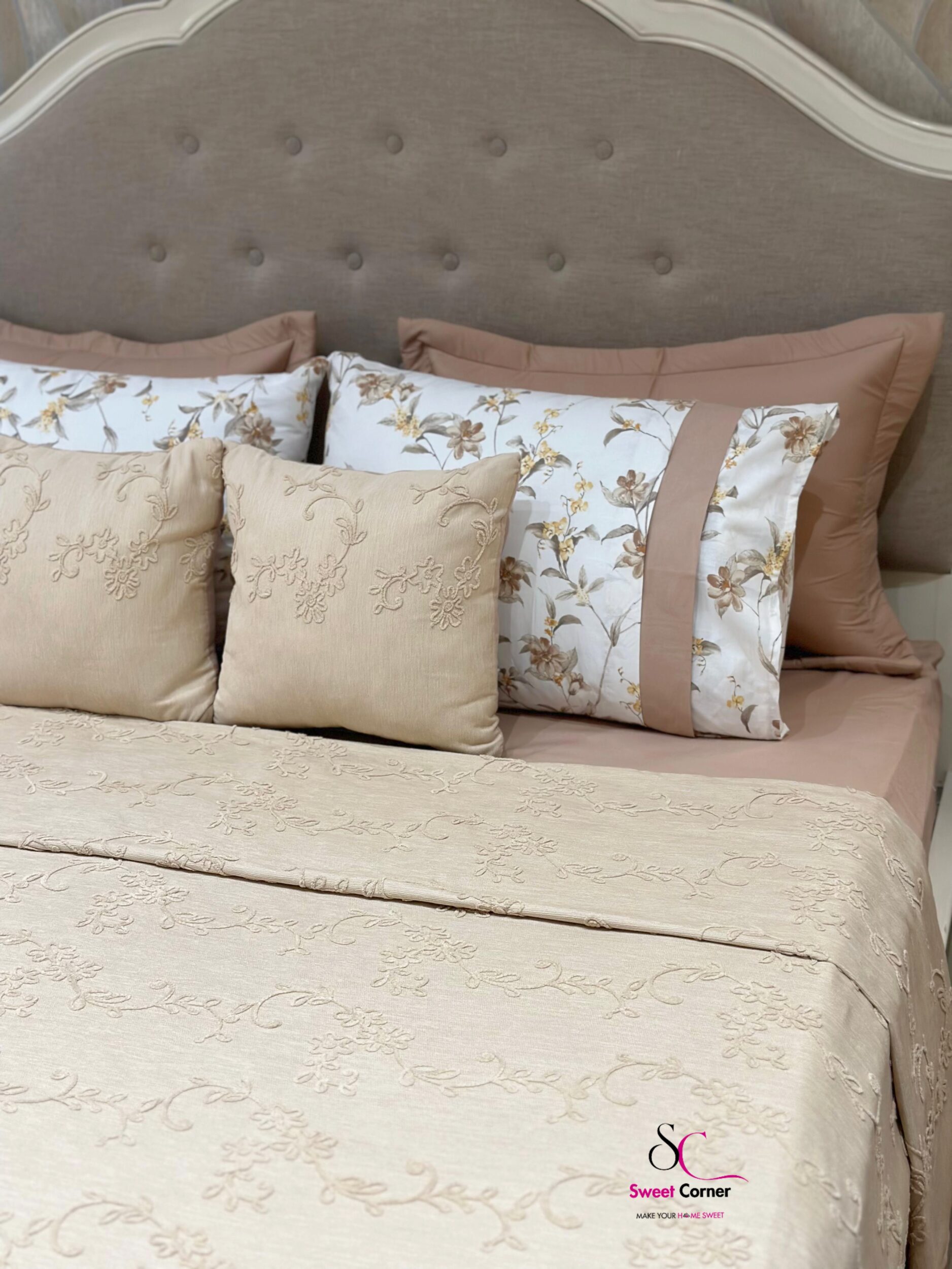 Offrez à votre chambre une touche d’élégance et de douceur avec la parure IVORIA . Confectionnée en coton de qualité supérieure, elle associe motifs fleuris et un uni beige raffiné pour un rendu chic et intemporel.