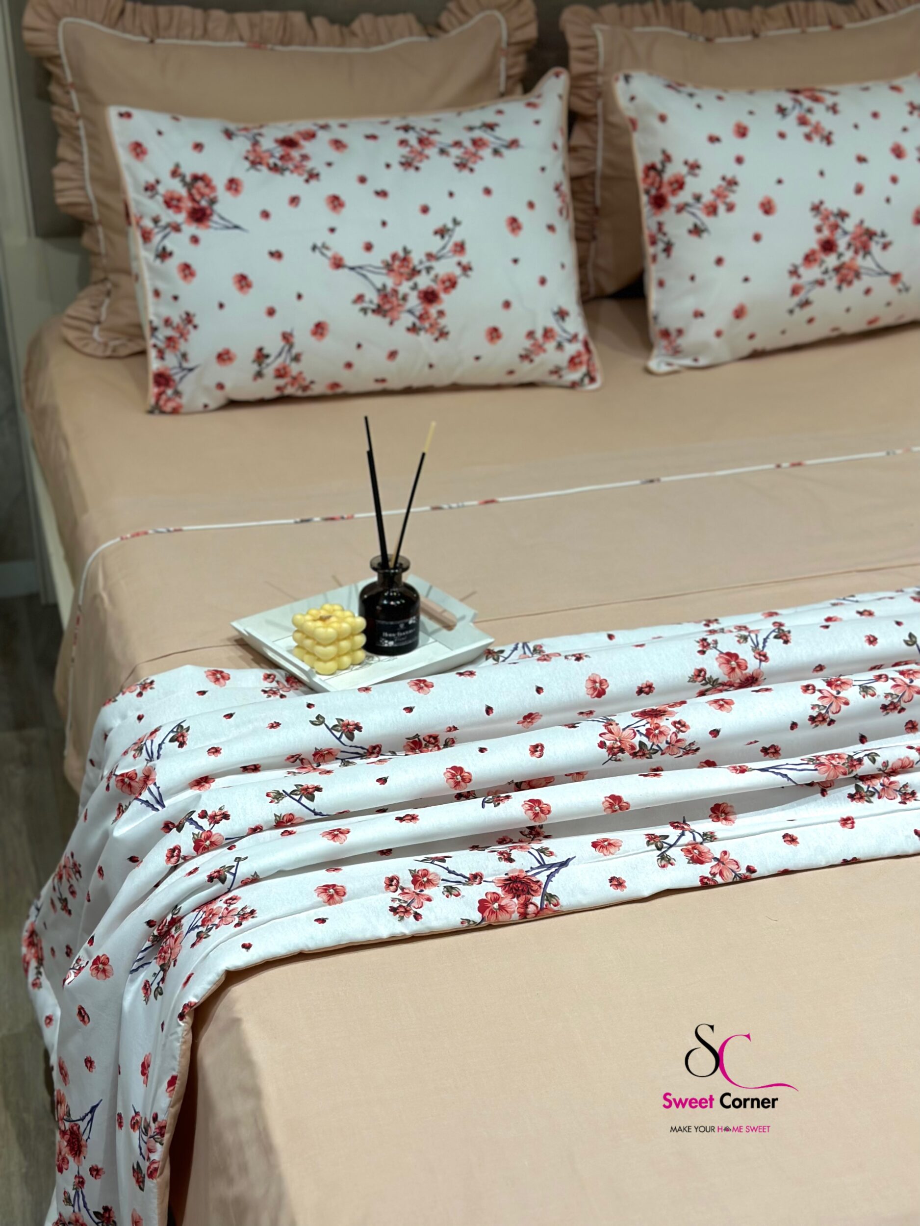 Parfaite alliance entre confort et esthétique, cette parure transforme votre lit en un espace raffiné et accueillant, avec une touche florale délicate qui évoque le calme et la fraîcheur.