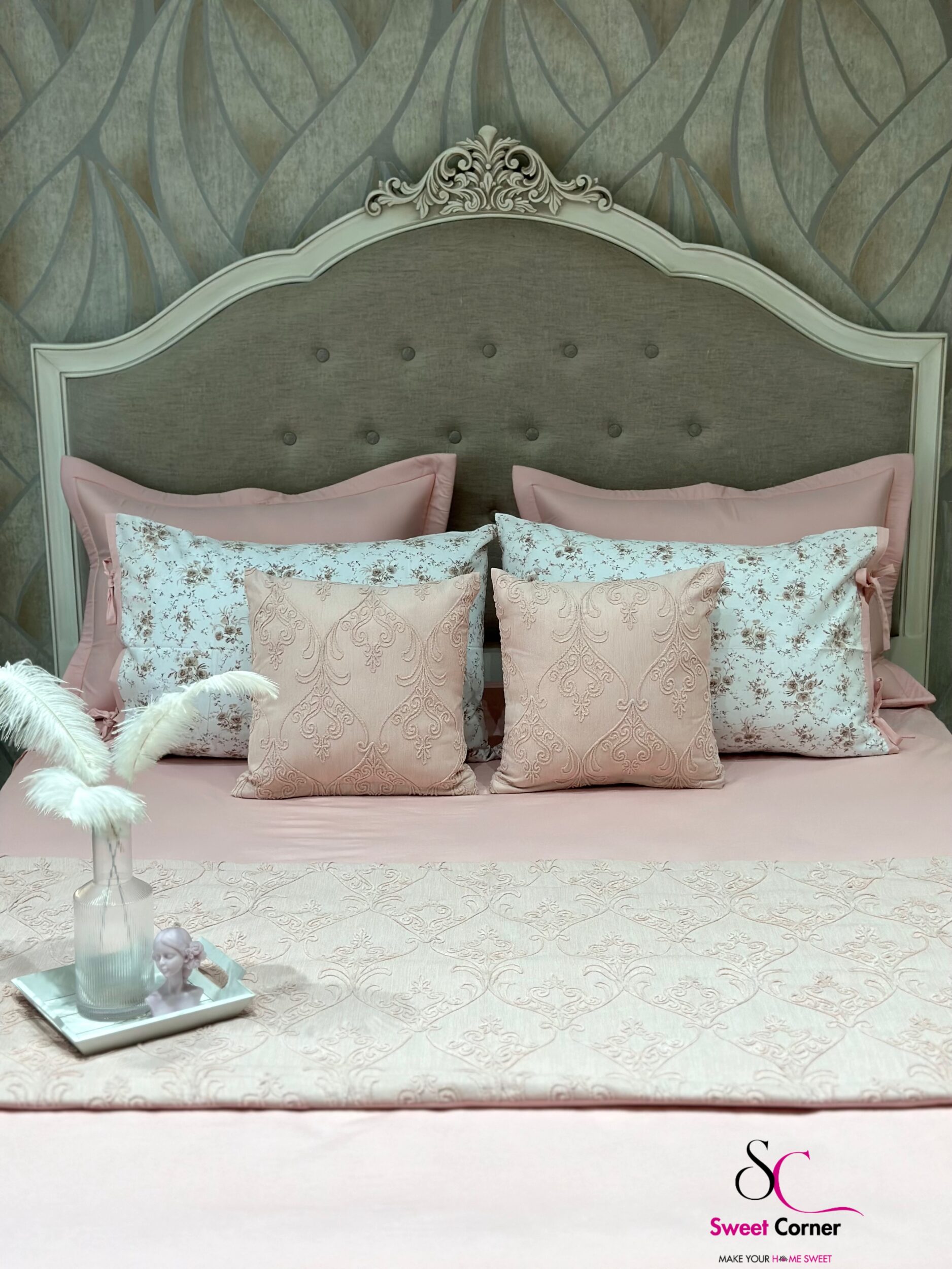•1 chemin de lit en coton jacquard (260×70 cm), qui complète l’ensemble avec une touche décorative sophistiquée.