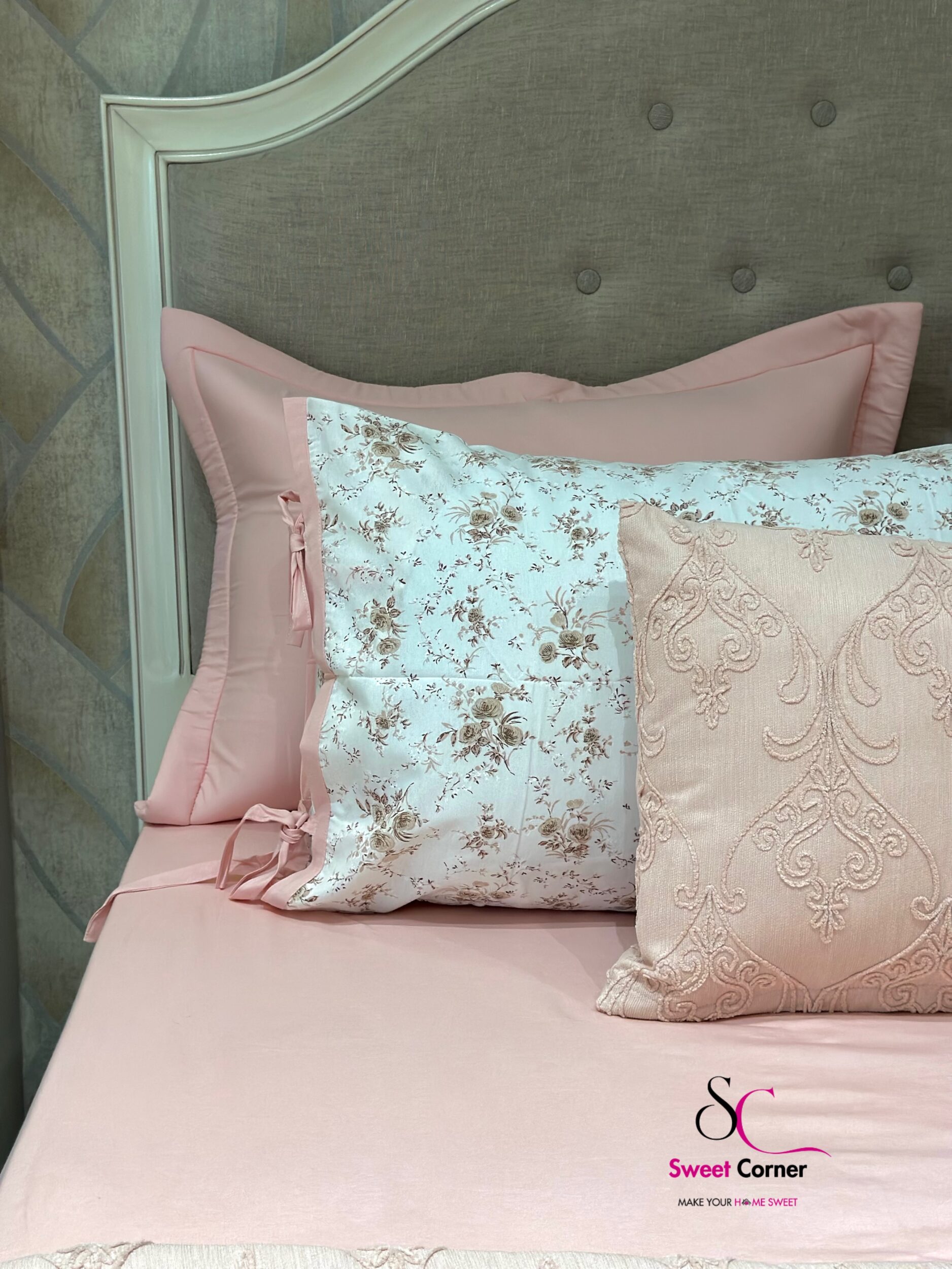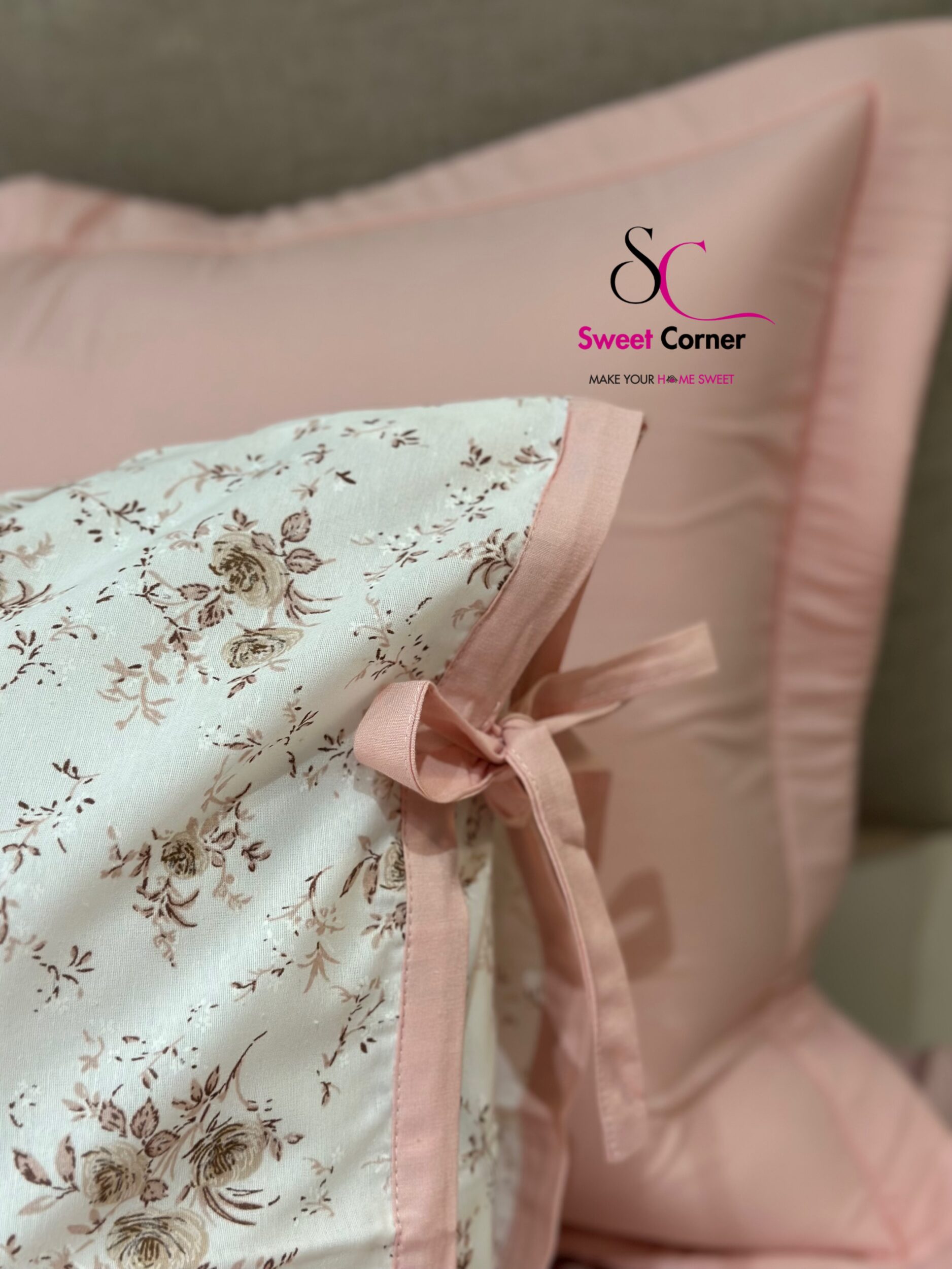 •2 taies d’oreiller à motif fleuri avec fermeture modèle papillon, apportant une note poétique et féminine.