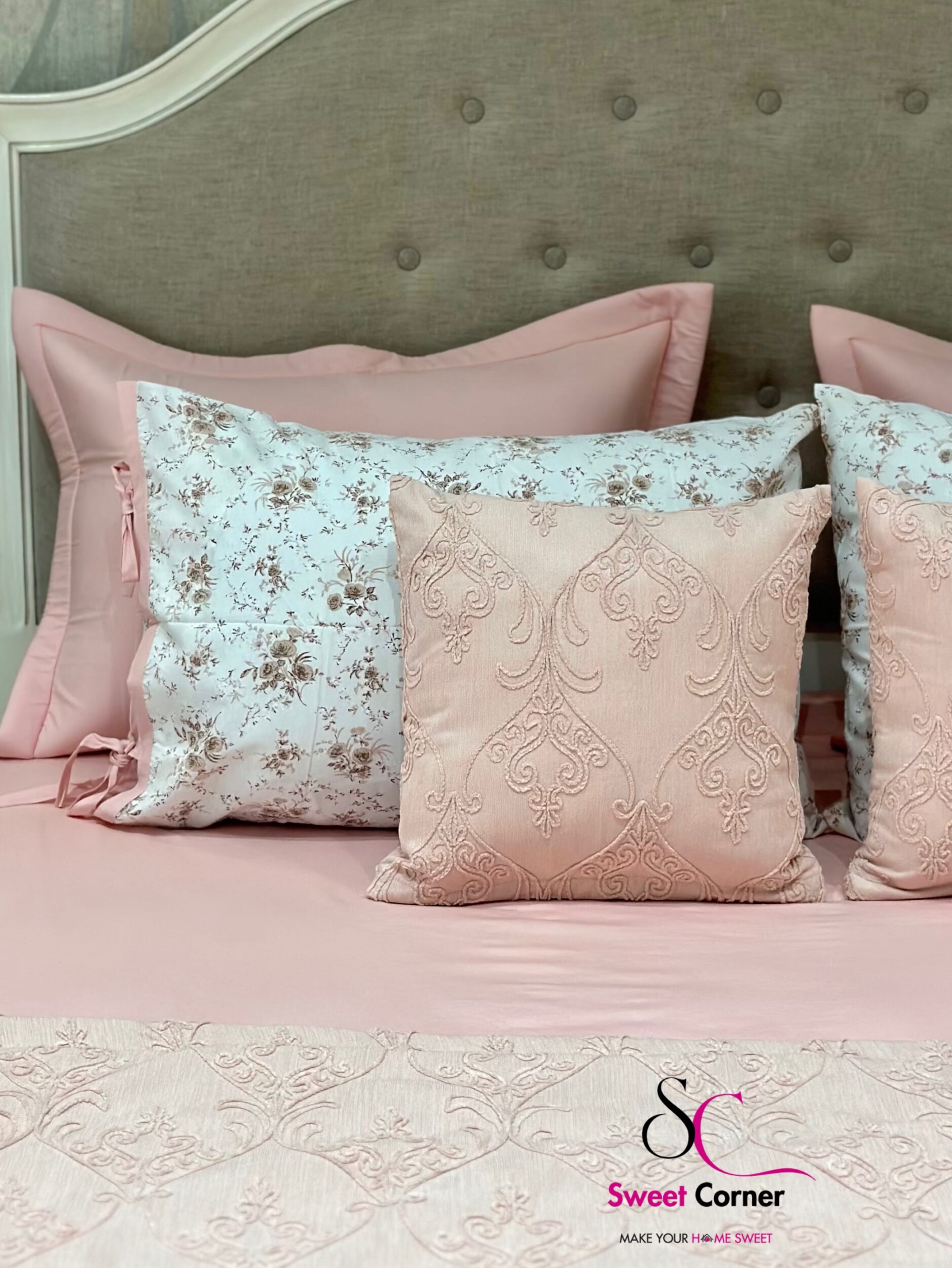 •2 taies d’oreiller rose matelassées (50×70 cm) pour une touche de douceur subtile.