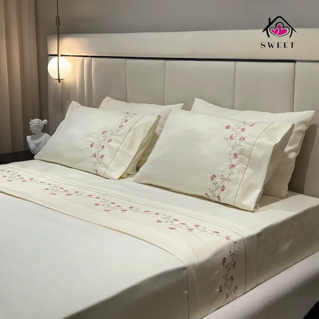 Parure de lit en coton blanc cassé brodé de motifs floraux – Apportez une touche de romantisme à votre chambre avec cette parure de lit en coton. La broderie anglaise délicate rehausse l’élégance de cette pièce. Le coton doux et respirant vous garantit des nuits de sommeil réparatrices.