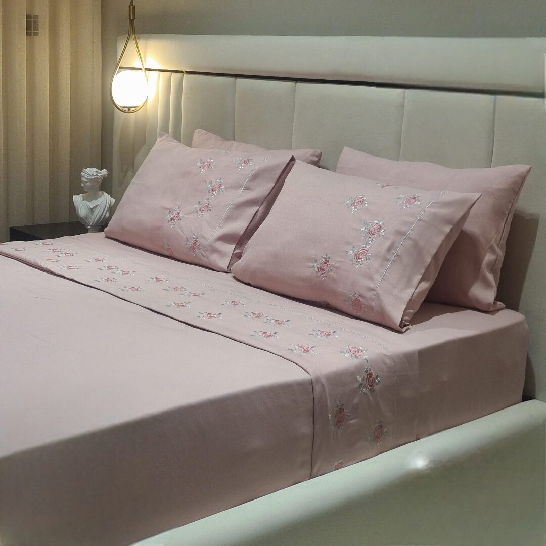 Parure de lit en coton ROSE brodé de motifs floraux – Apportez une touche de romantisme à votre chambre avec cette parure de lit en coton. La broderie anglaise délicate rehausse l’élégance de cette pièce. Le coton doux et respirant vous garantit des nuits de sommeil réparatrices.